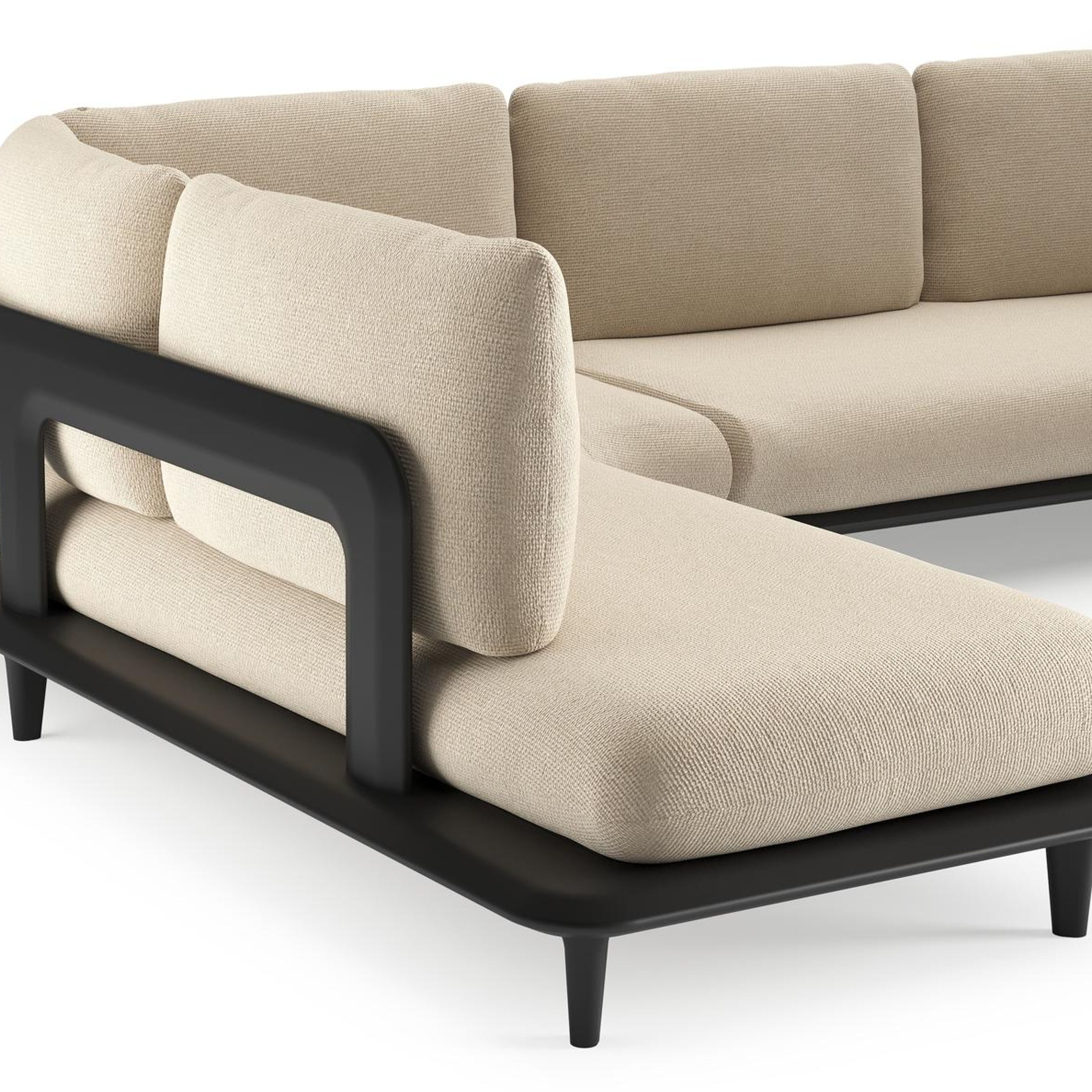 Bomero loungehoek in zwart aluminium met althea chalk all weather cosytica kussen | Exterioo tuinmeubelen