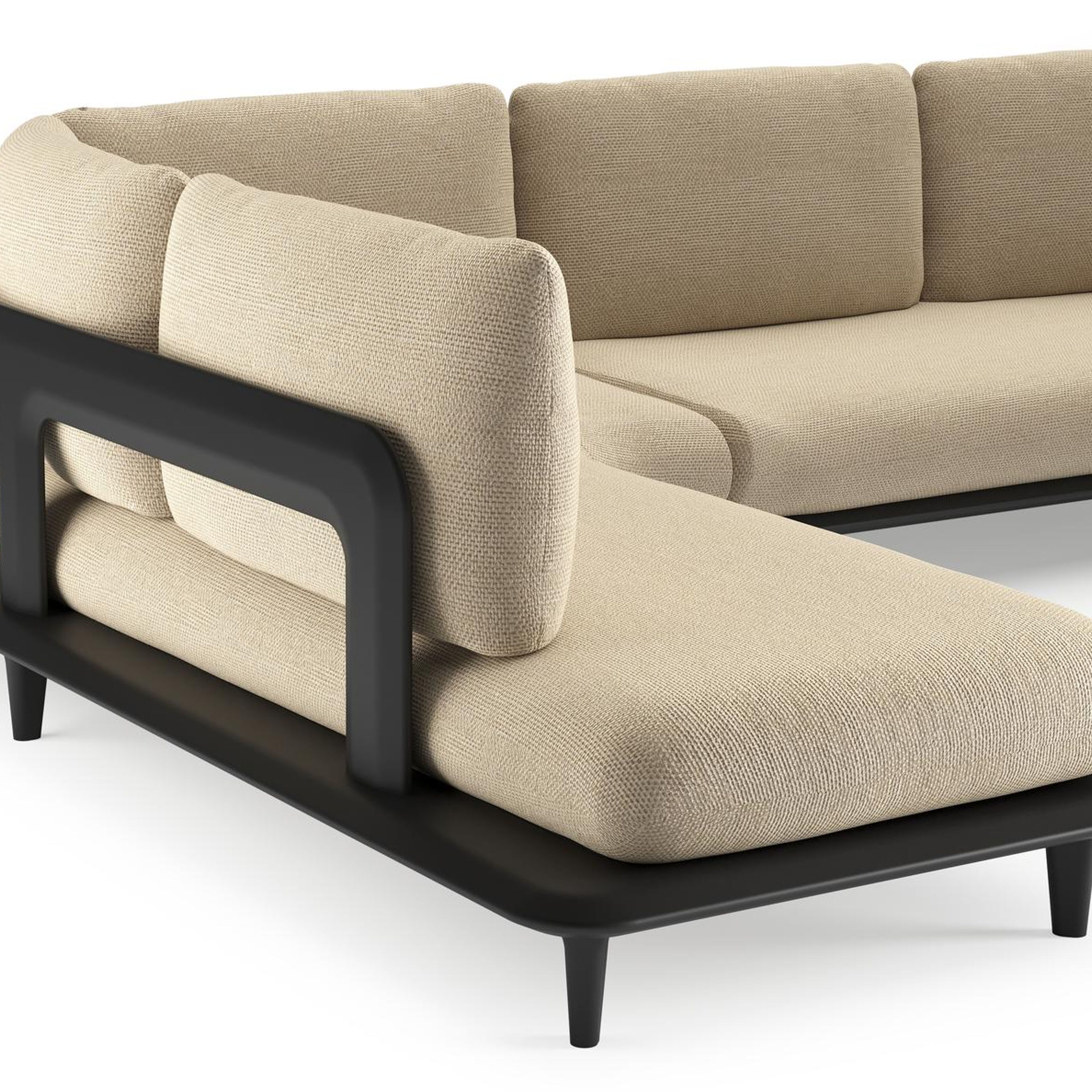 Bomero loungehoek in zwart aluminium met althea camel all weather cosytica kussen | Exterioo tuinmeubelen