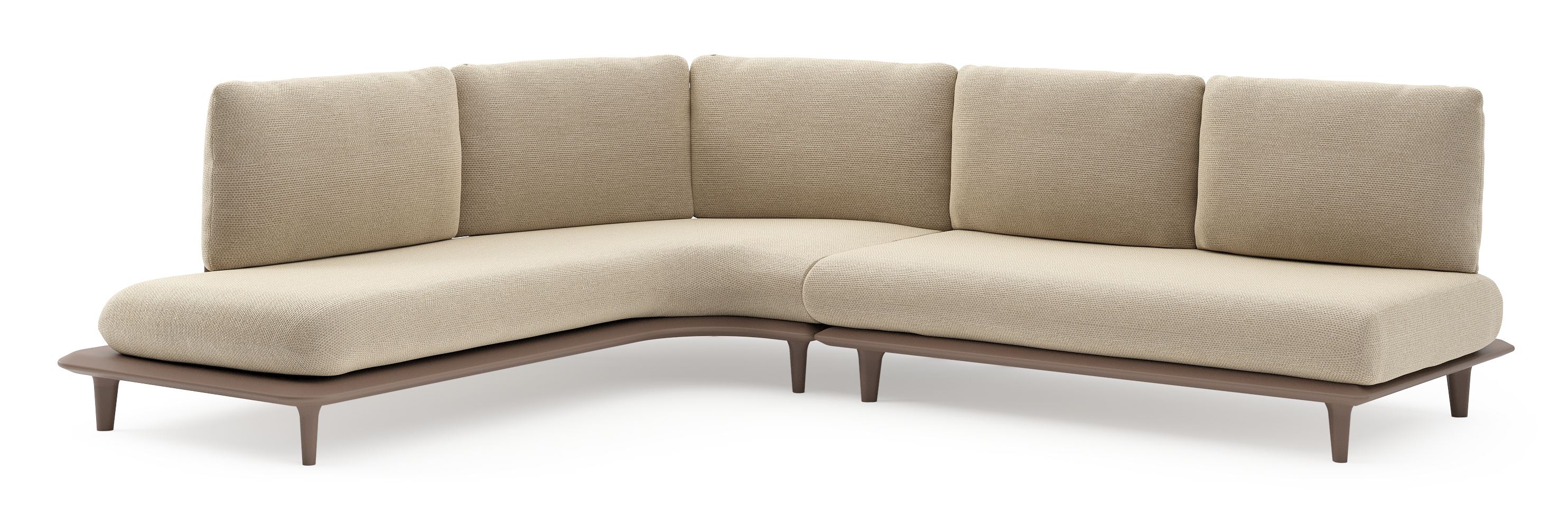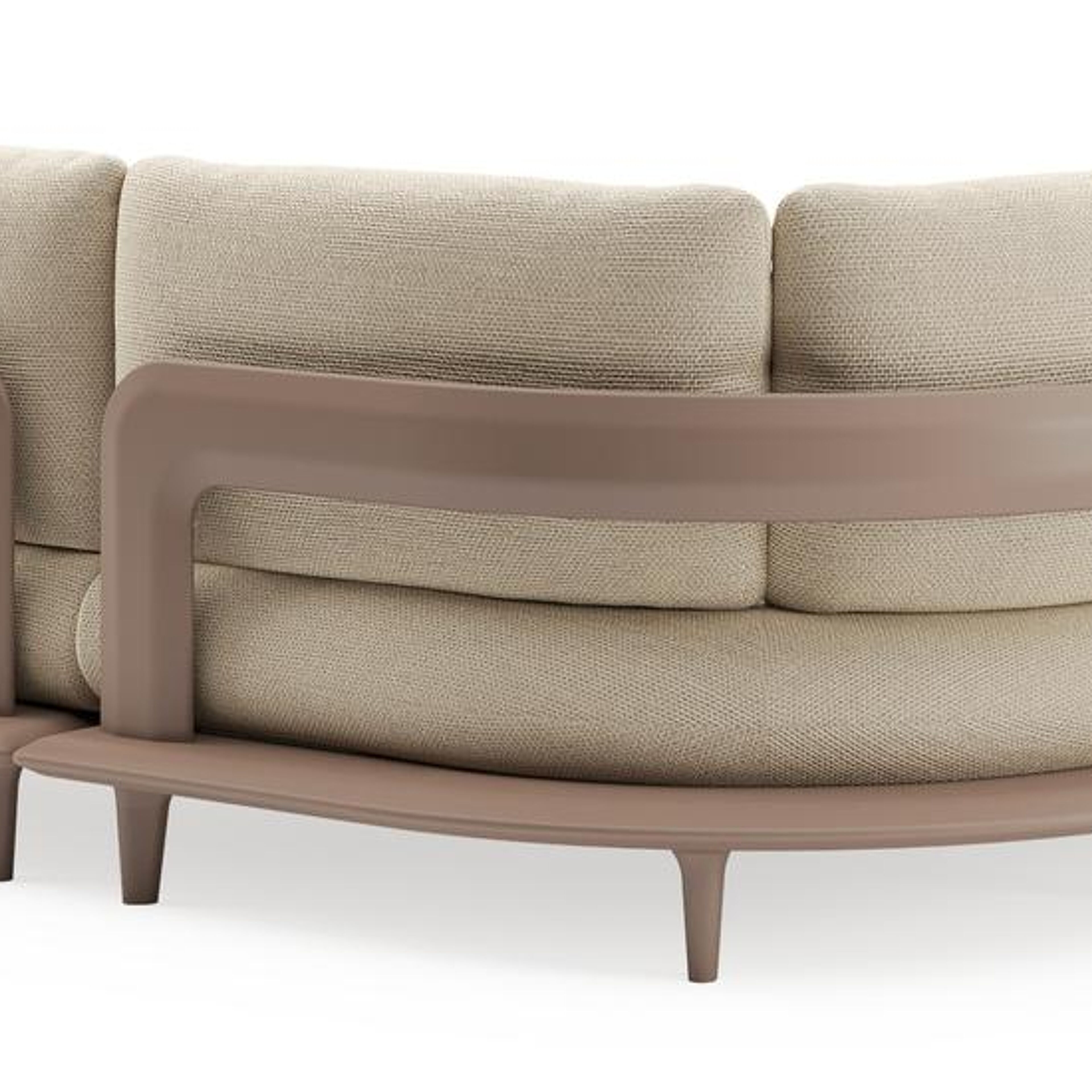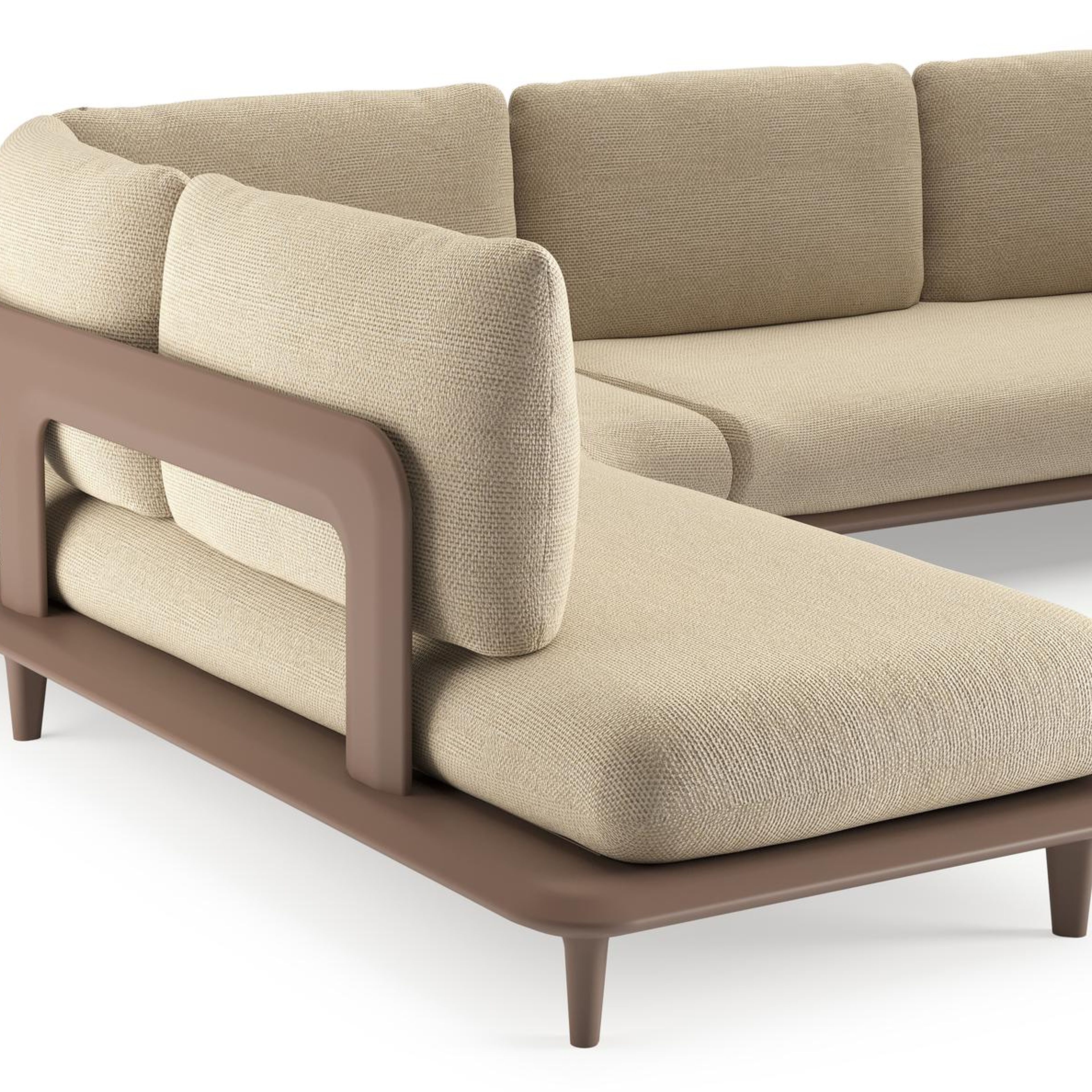 Bomero loungehoek in taupe aluminium met althea camel all weather cosytica kussen | Exterioo tuinmeubelen