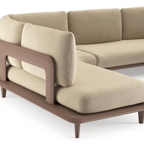 Bomero loungehoek in taupe aluminium met althea camel all weather cosytica kussen | Exterioo