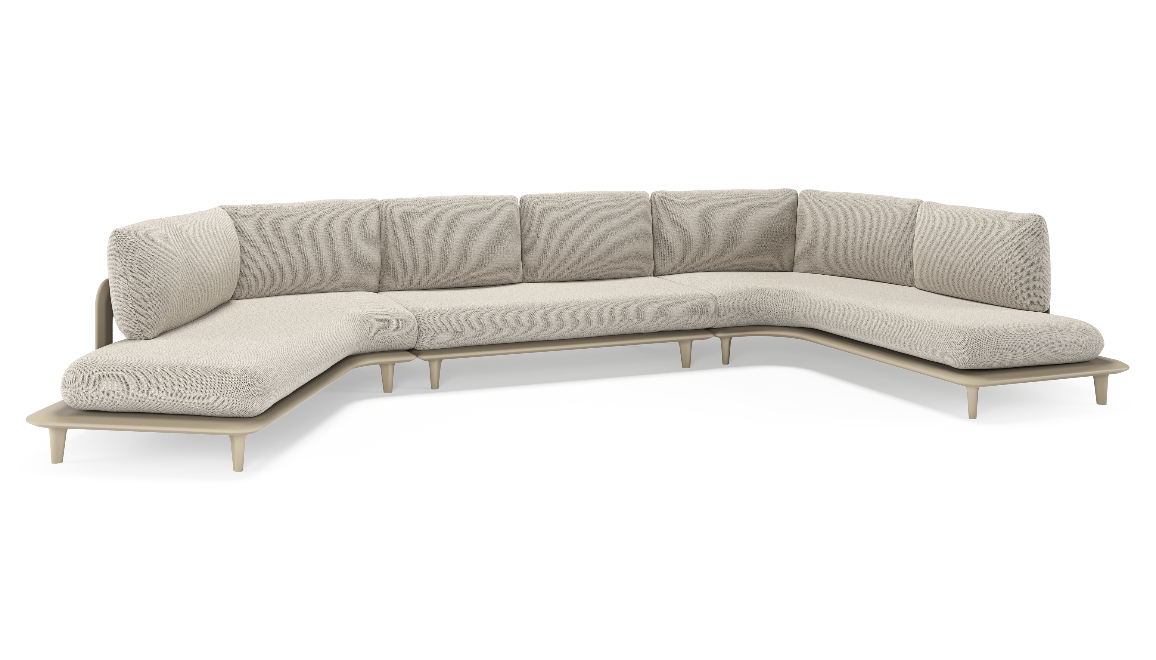 Bomero loungehoek in beige aluminium met firenze sand all weather solica kussen | Exterioo tuinmeubelen