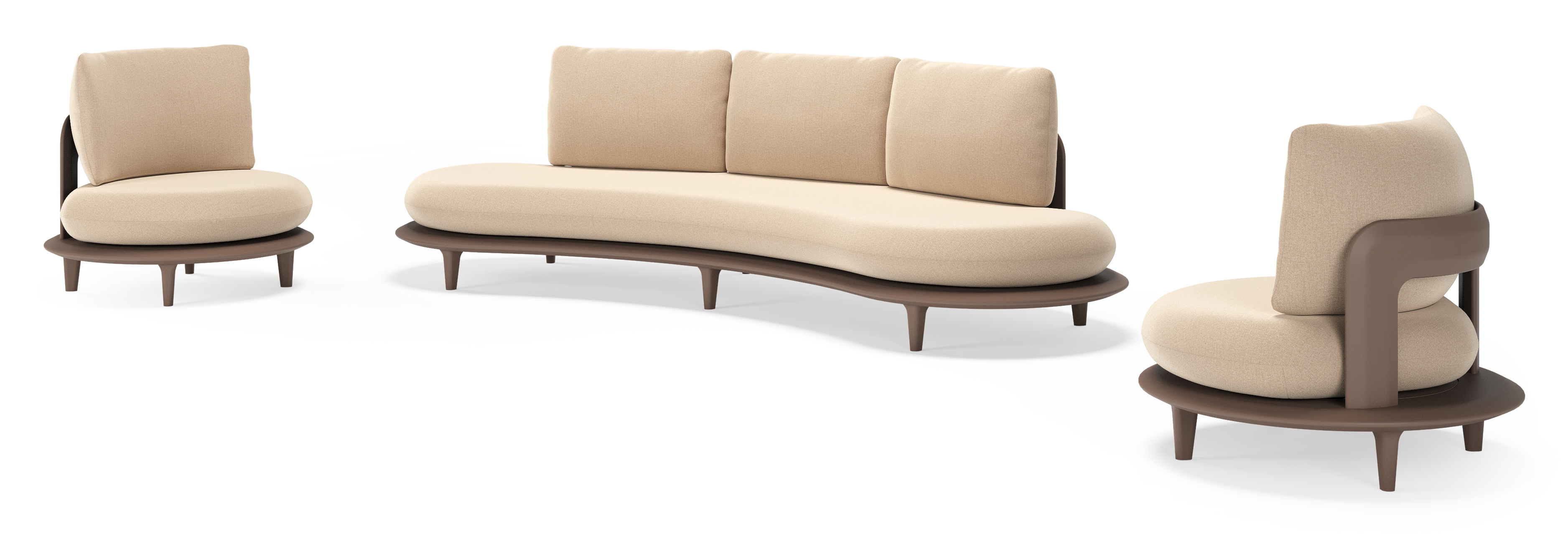 Bomero loungeset in taupe aluminium met natte heather beige all weather sunbrella® luxe kussen | Exterioo tuinmeubelen