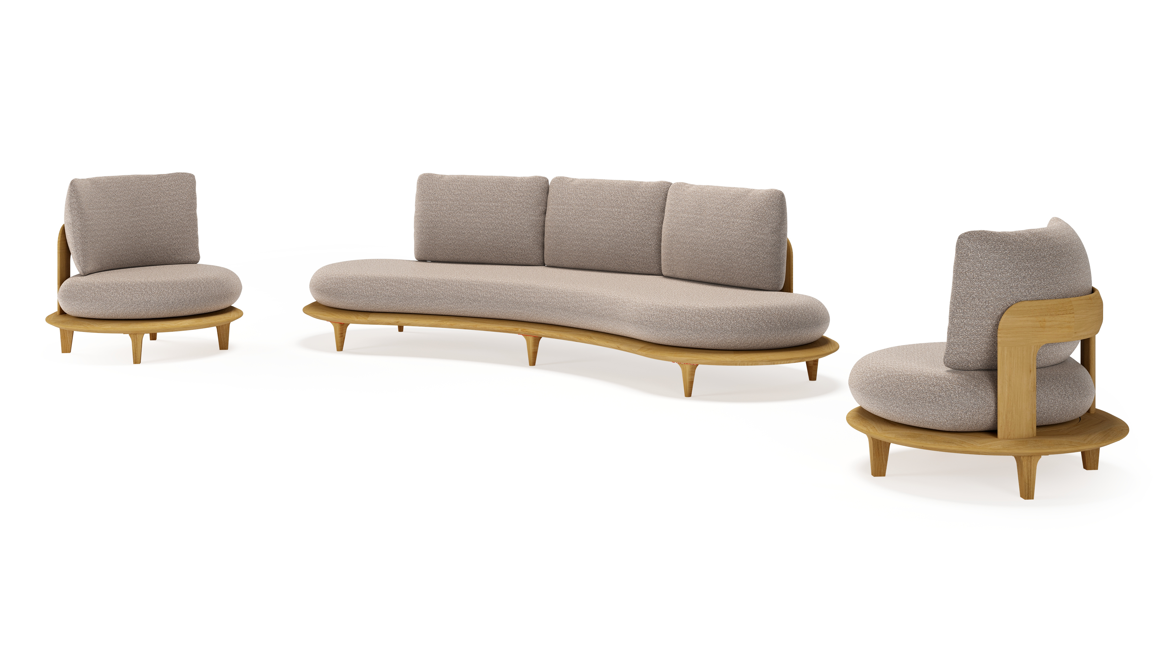 Bomero loungeset in teak met wander manioc all weather sunbrella® luxe kussen | Exterioo tuinmeubelen