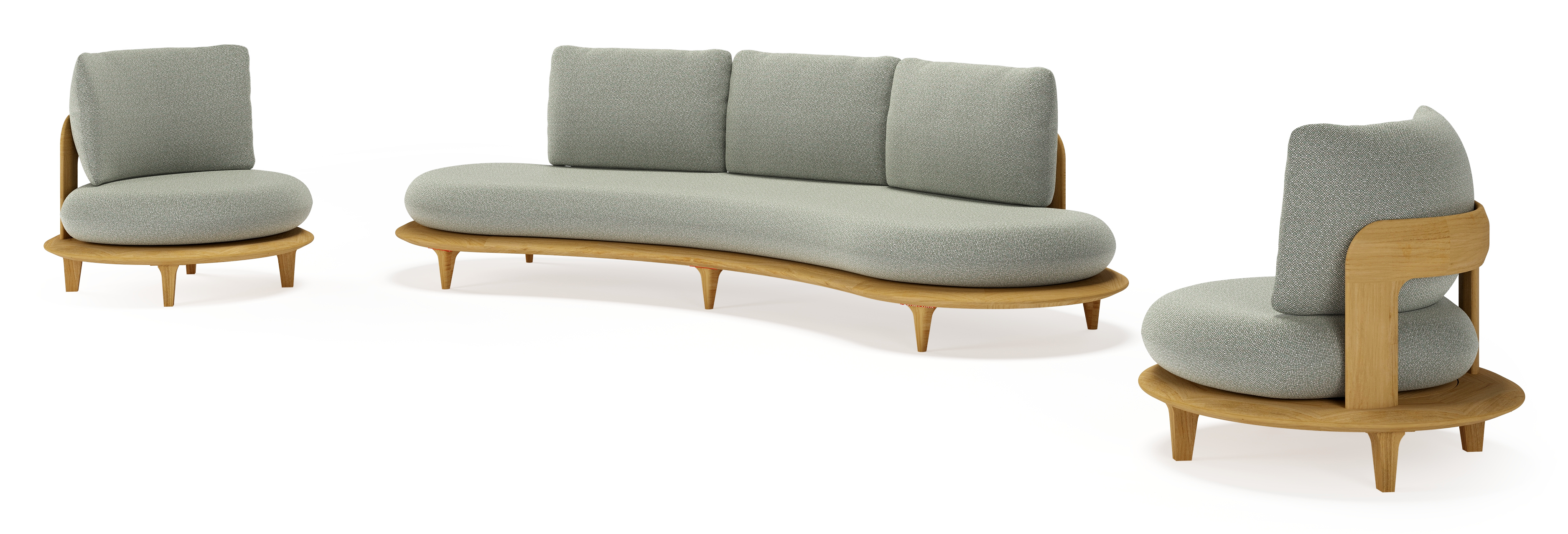 Bomero loungeset in teak met savane leaf all weather sunbrella® luxe kussen | Exterioo tuinmeubelen