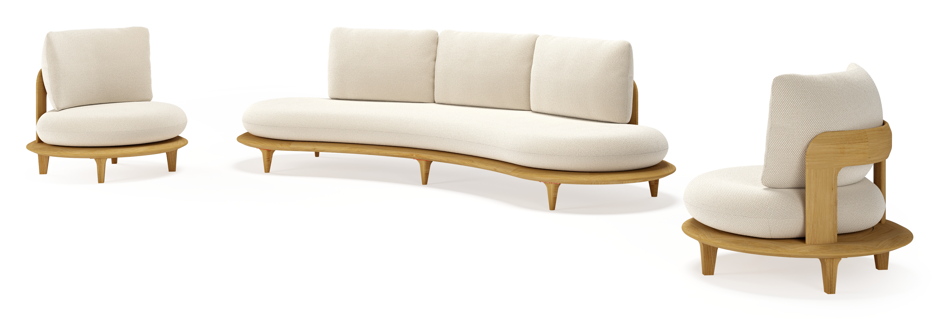 Bomero loungeset in teak met althea off white all weather cosytica kussen | Exterioo tuinmeubelen
