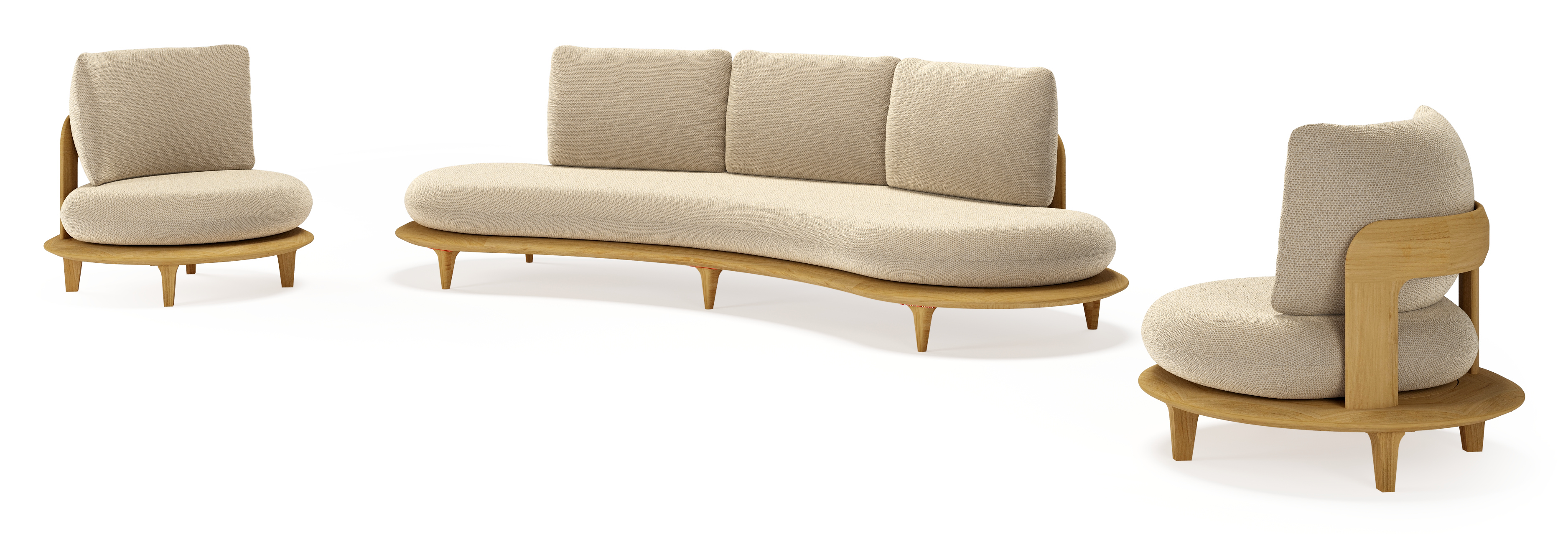 Bomero loungeset in teak met althea camel all weather cosytica kussen | Exterioo tuinmeubelen