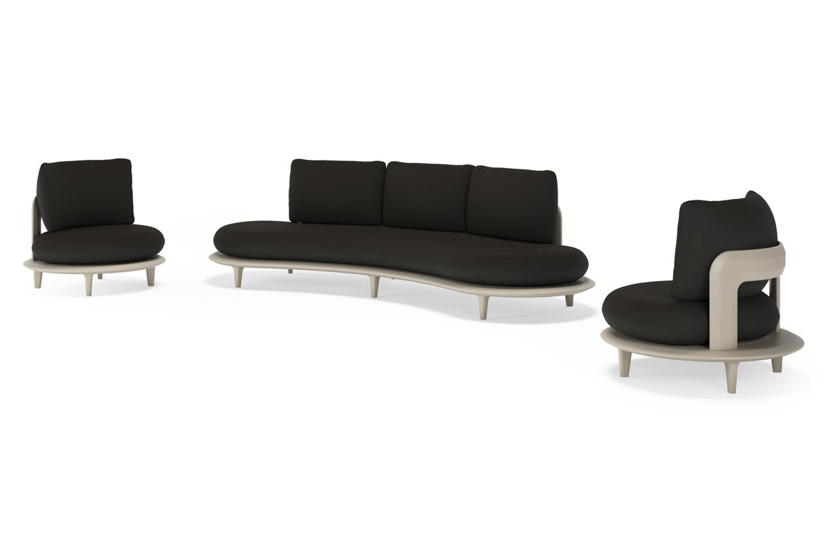 Bomero loungeset in beige aluminium met heritage char all weather sunbrella® luxe kussen | Exterioo