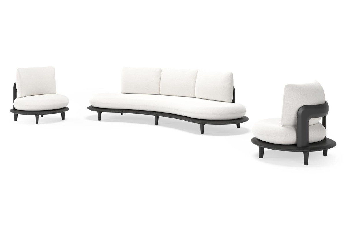 Bomero loungeset in zwart aluminium met soul optik all weather solica kussen | Exterioo