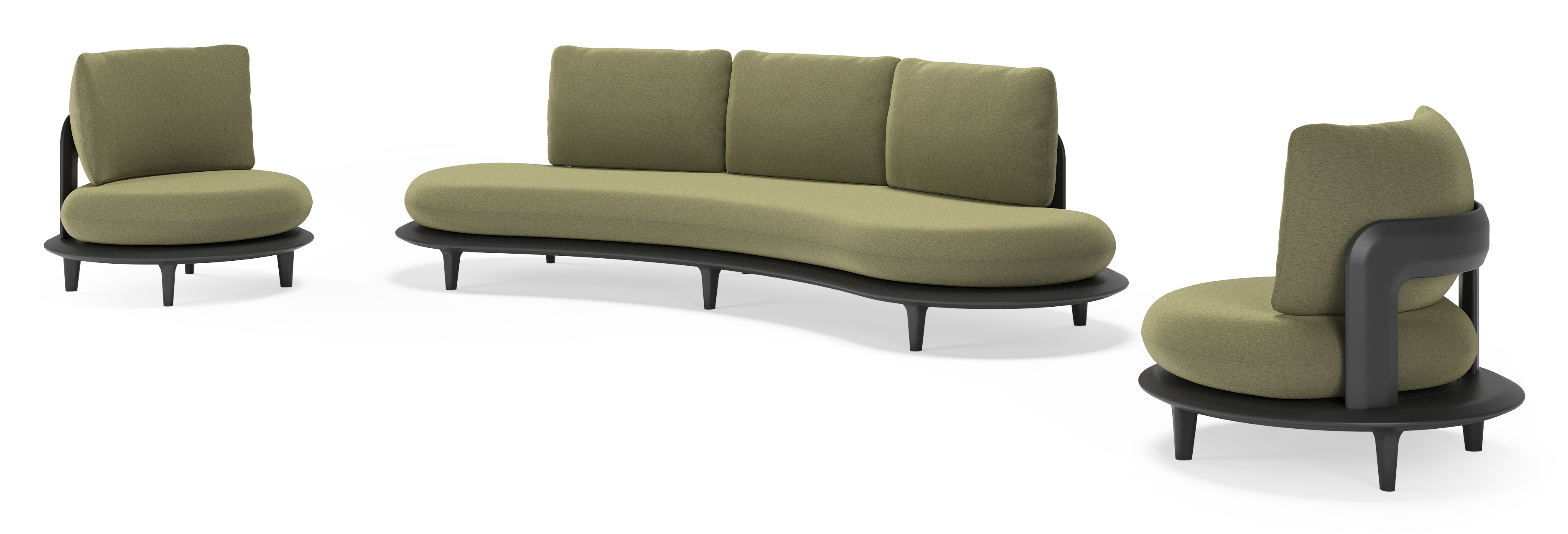 Bomero loungeset in zwart aluminium met heritage leaf all weather sunbrella® luxe kussen | Exterioo tuinmeubelen
