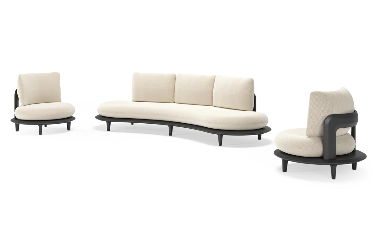 Bomero loungeset in zwart aluminium met althea off white all weather cosytica kussen | Exterioo