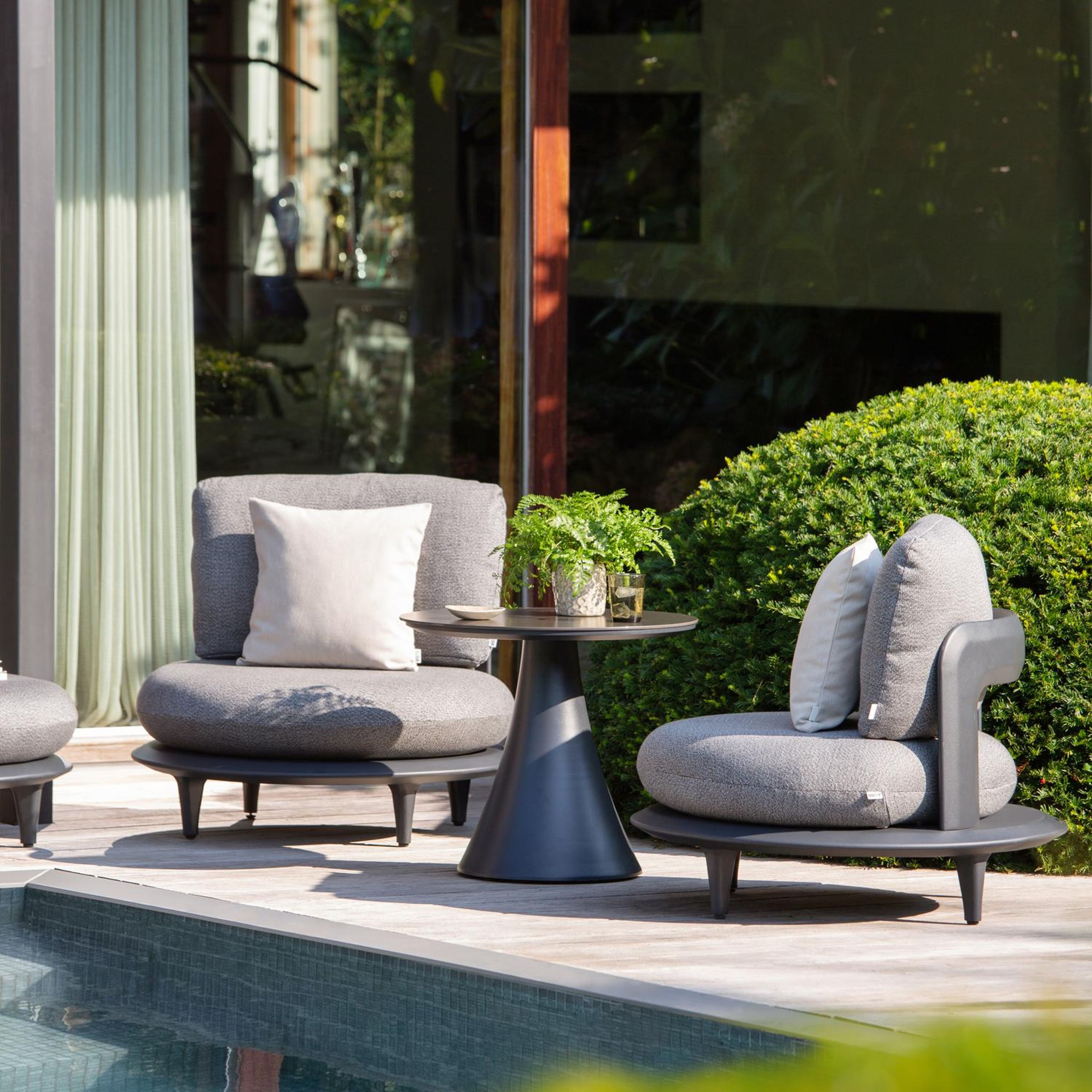 Bomero loungestoel in zwart aluminium met tundra pepper all weather sunbrella® luxe kussen | Exterioo tuinmeubelen