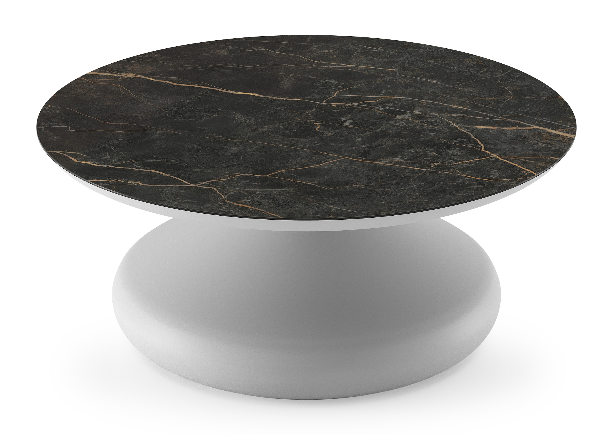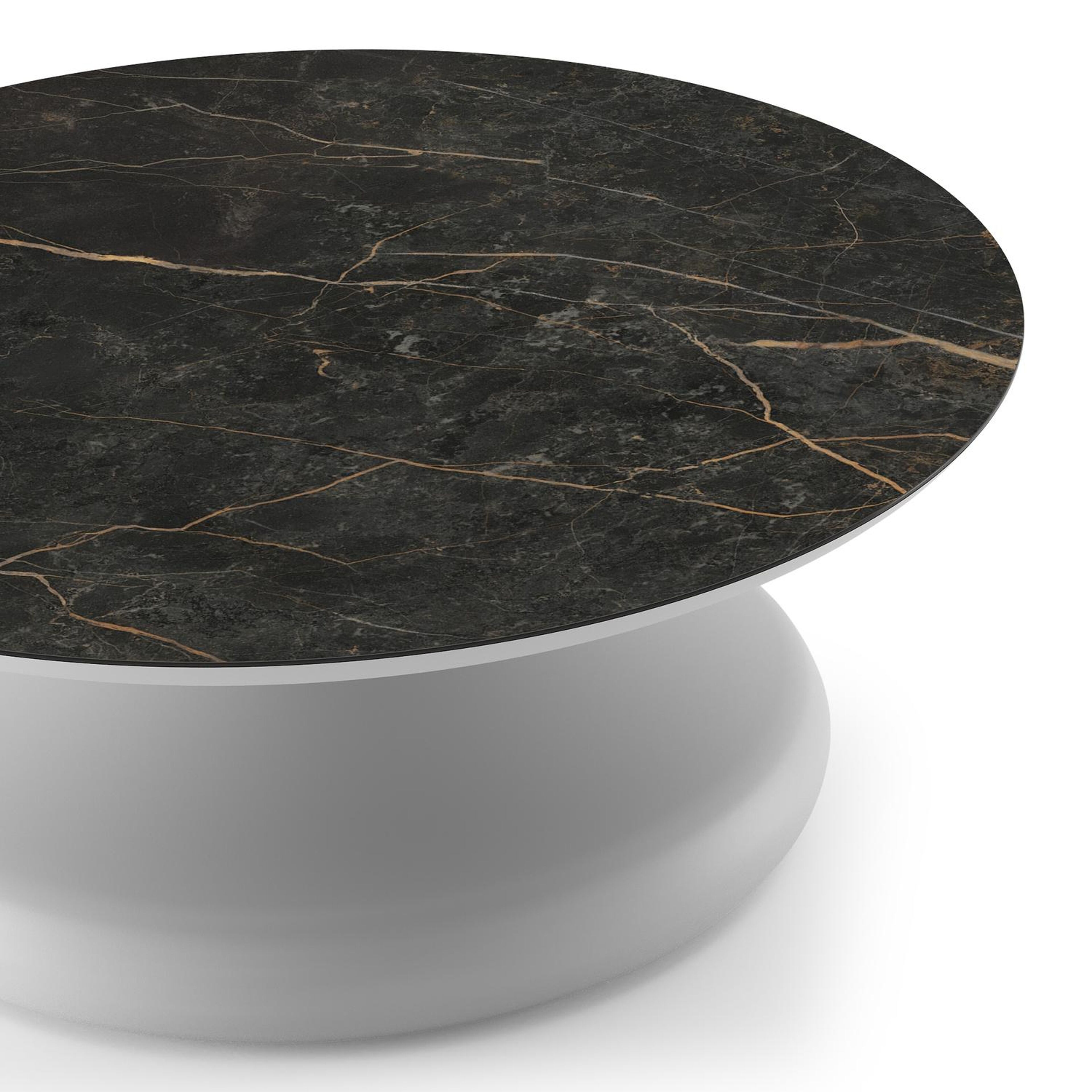 Bomero loungetafel rond in wit aluminium en volkeramiek Black Obsession - Dia. 84 x H 32.2 cm | Exterioo tuinmeubelen