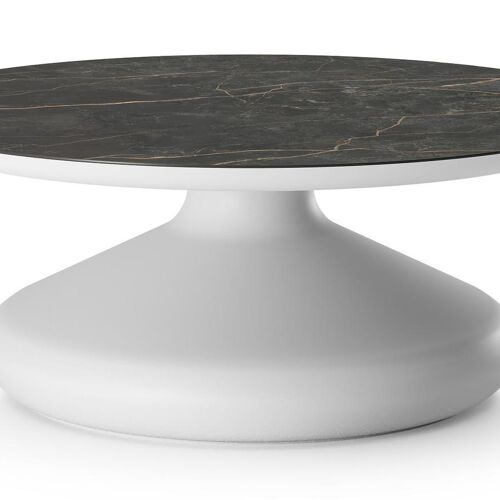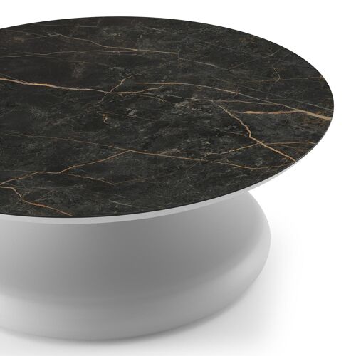 Bomero loungetafel rond in wit aluminium en volkeramiek Black Obsession - Dia. 84 x H 32.2 cm | Exterioo
