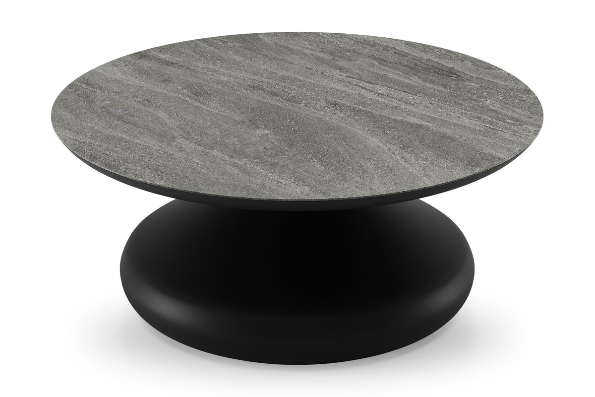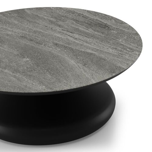 Bomero loungetafel rond in zwart aluminium en volkeramiek Aspen Grey - Dia. 84 x H 32.2 cm | Exterioo