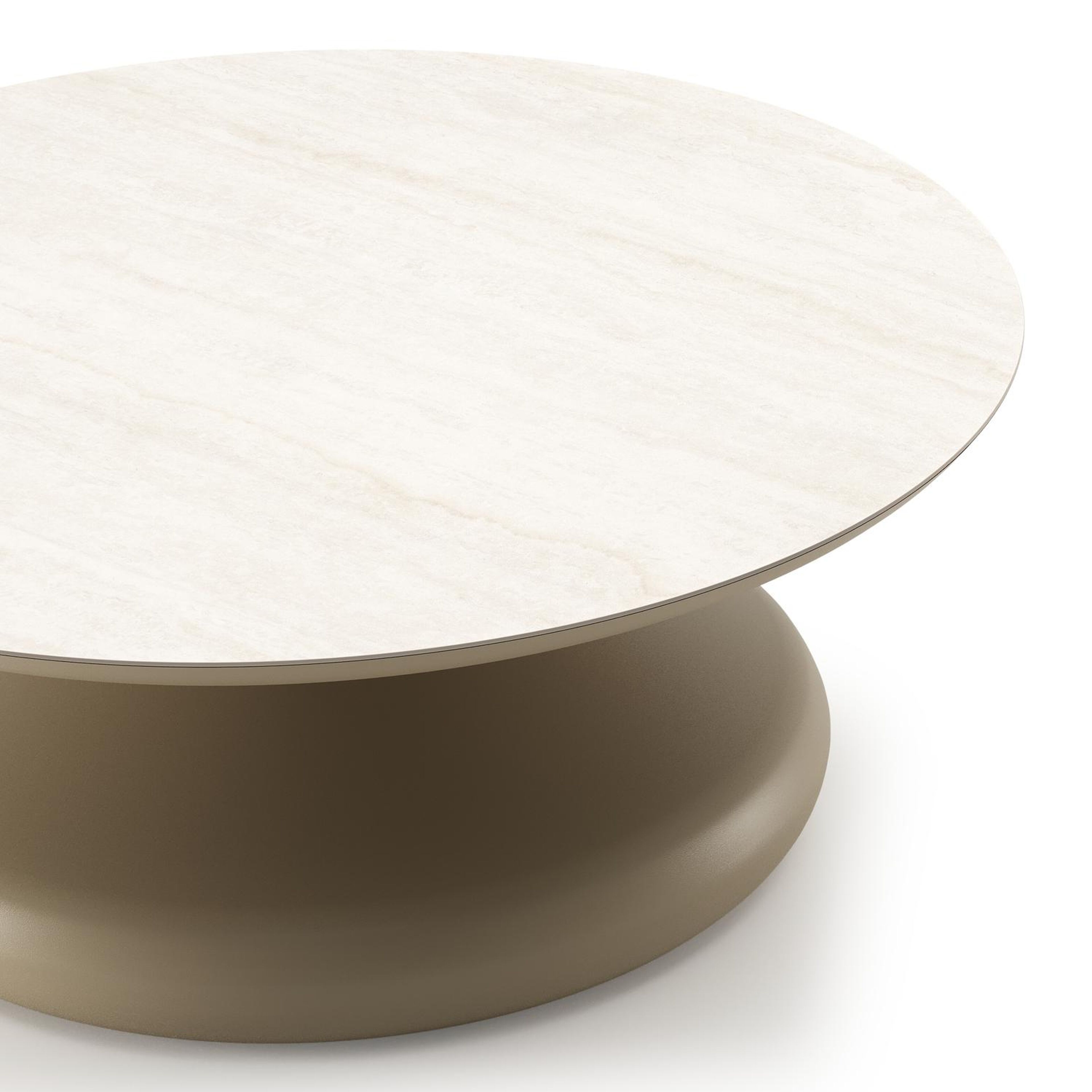 Bomero loungetafel rond in beige aluminium en volkeramiek Travertino Bianco - Dia. 84 x H 32.2 cm | Exterioo tuinmeubelen