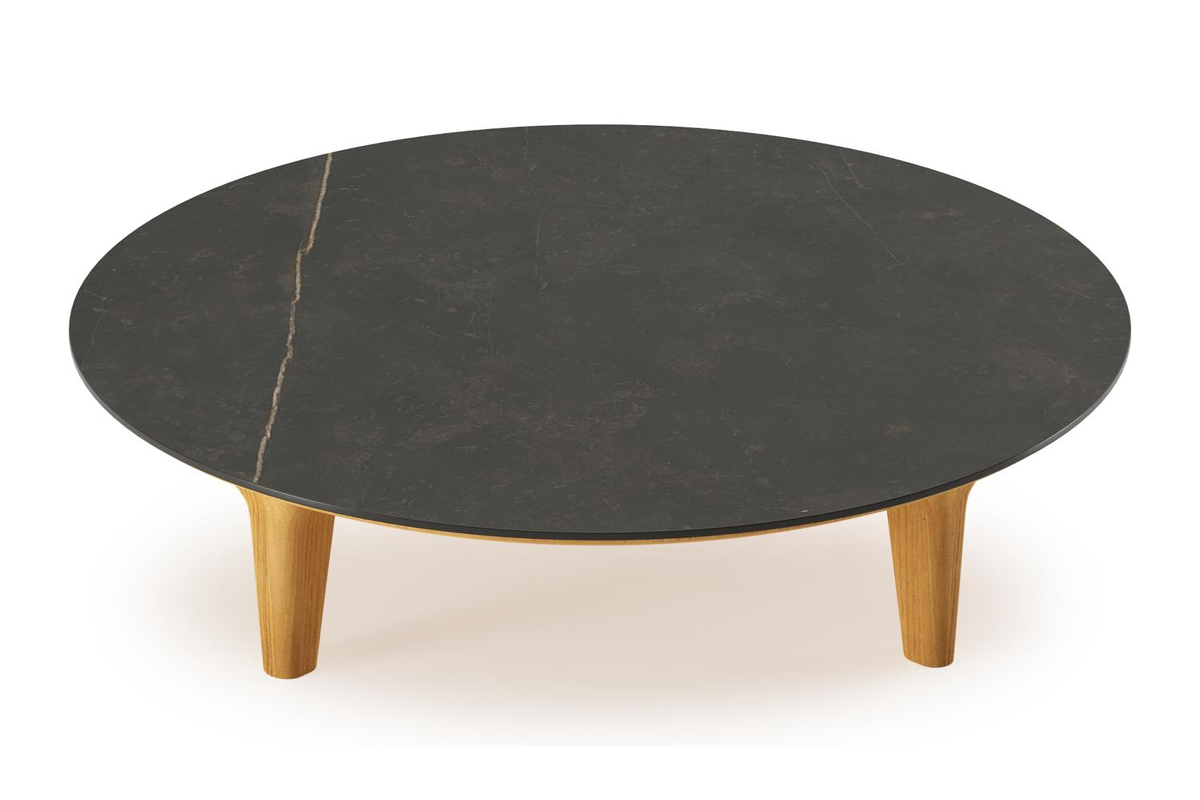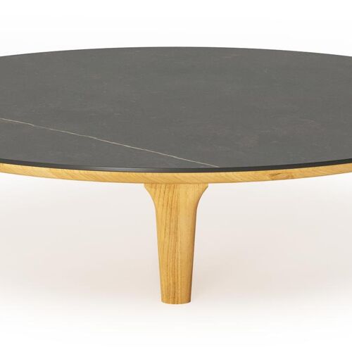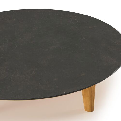 Bomero loungetafel rond in teak en volkeramiek Calatorao - Dia. 85 x H 20 cm | Exterioo
