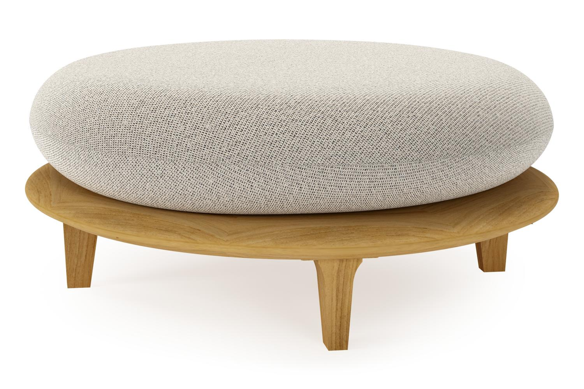 Bomero poef in teak met firenze sand all weather solica kussen | Exterioo
