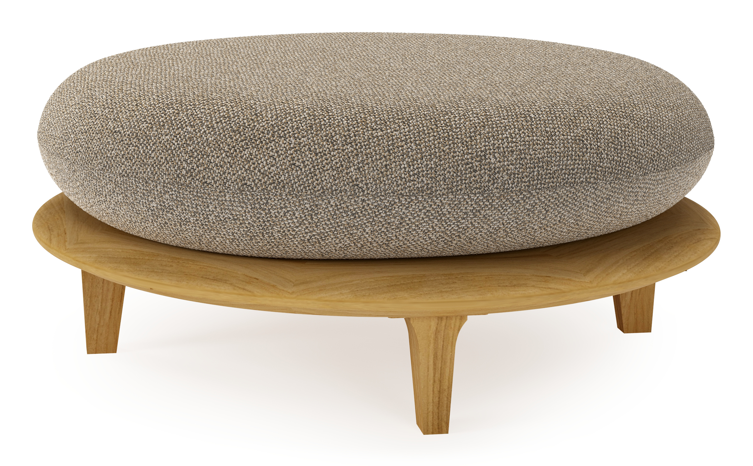 Bomero poef in teak met madagascar burch all weather cosytica kussen | Exterioo tuinmeubelen