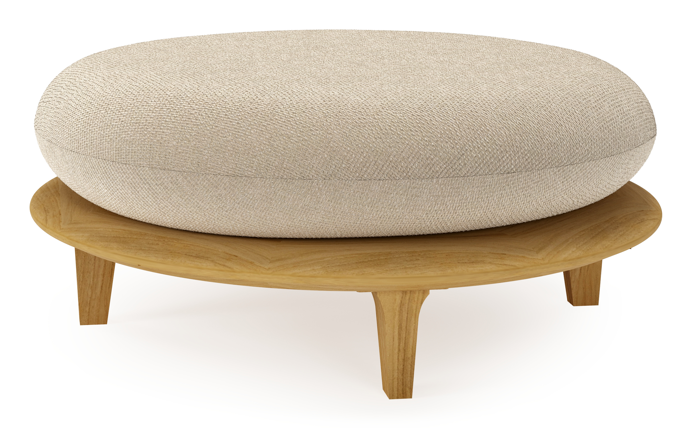 Bomero poef in teak met althea chalk all weather cosytica kussen | Exterioo tuinmeubelen