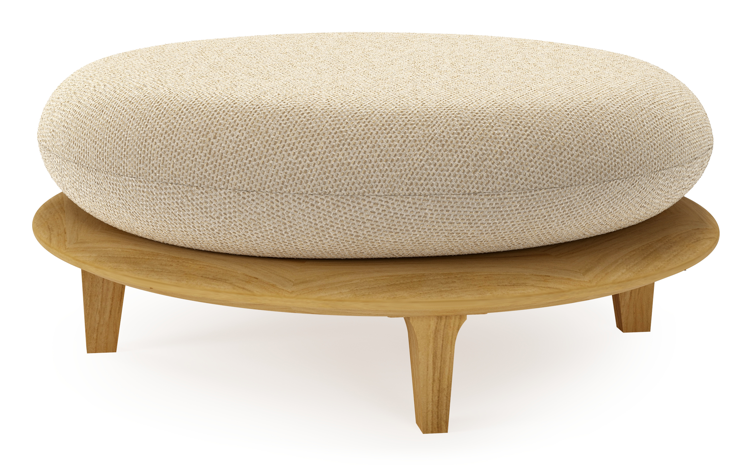 Bomero poef in teak met althea camel all weather cosytica kussen | Exterioo tuinmeubelen