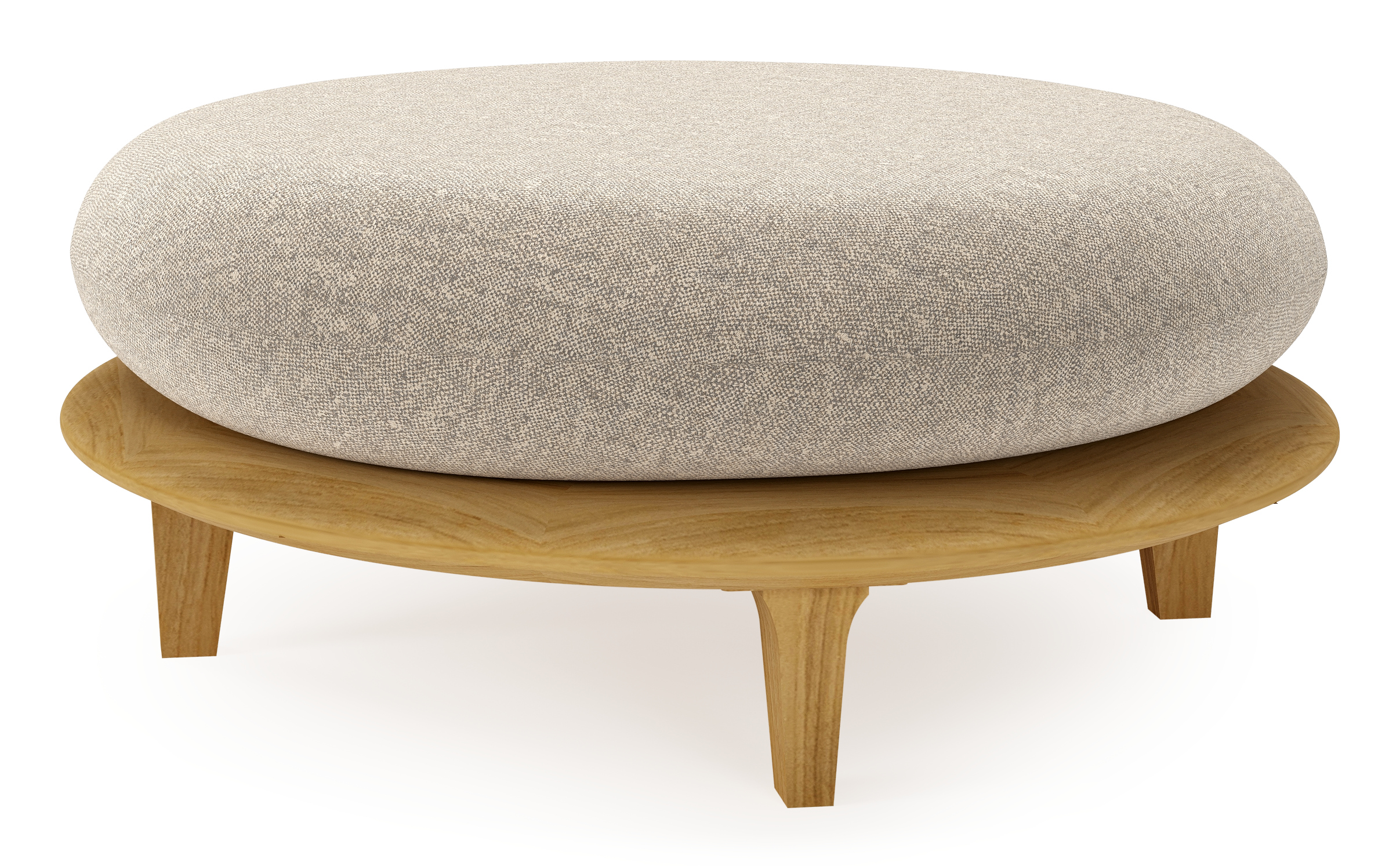 Bomero poef in teak met chartres pewter all weather sunbrella® luxe kussen | Exterioo tuinmeubelen