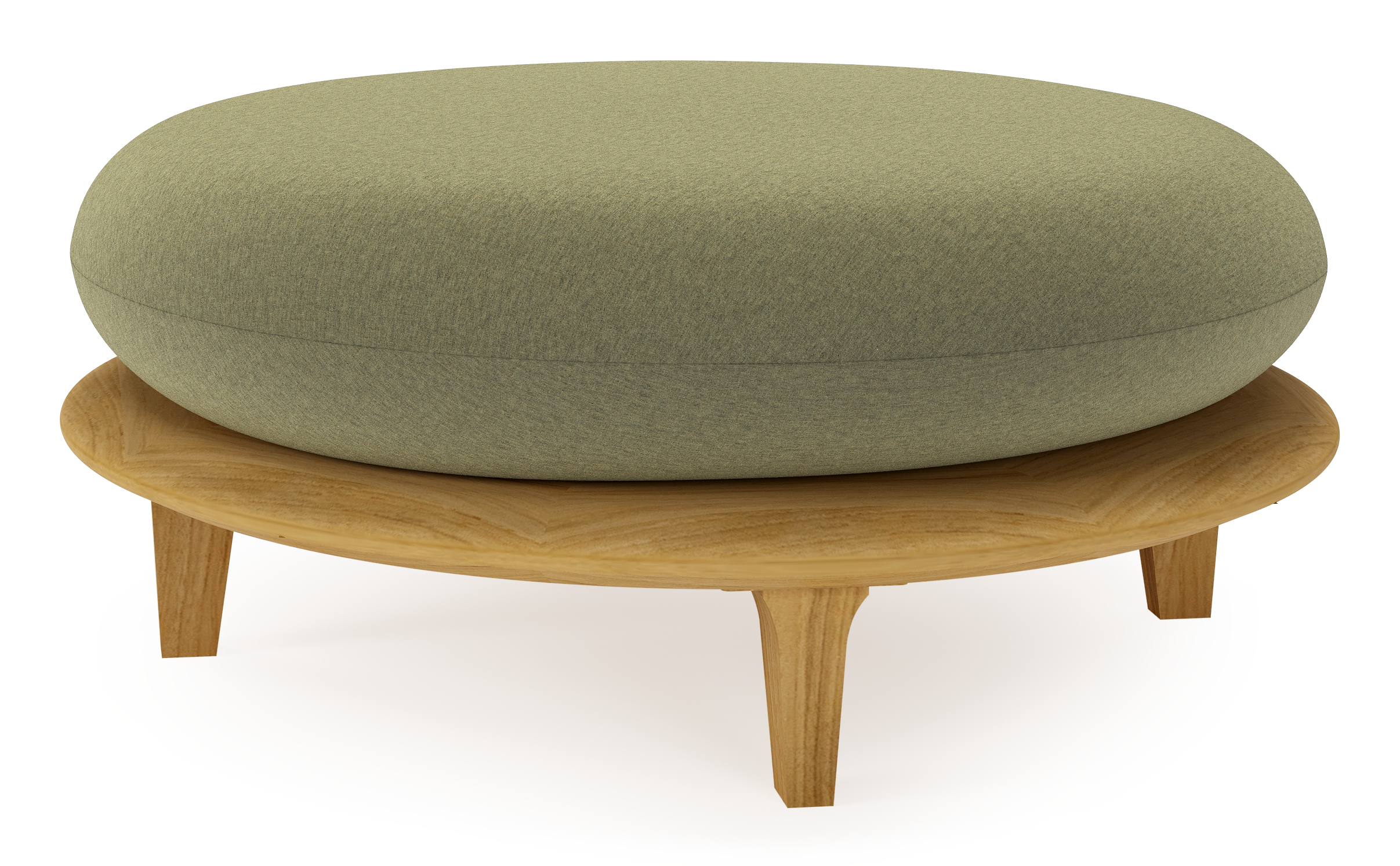 Bomero poef in teak met heritage leaf all weather sunbrella® luxe kussen | Exterioo tuinmeubelen