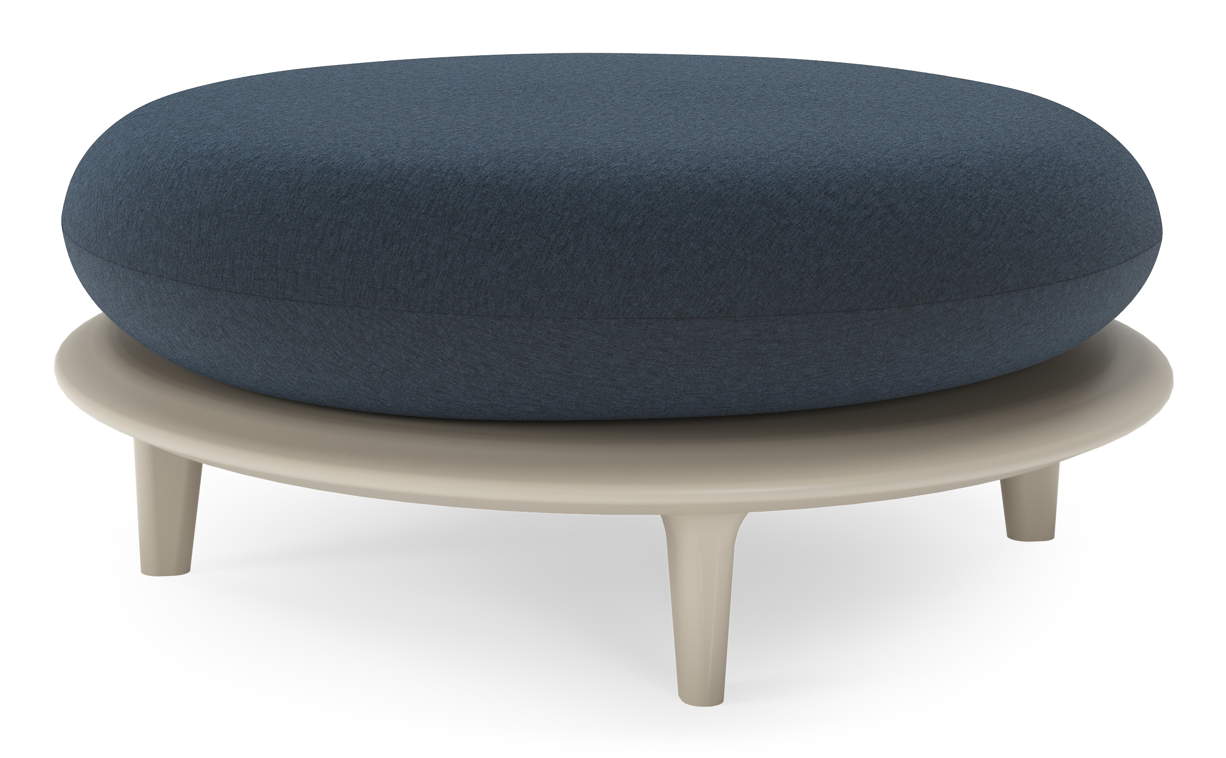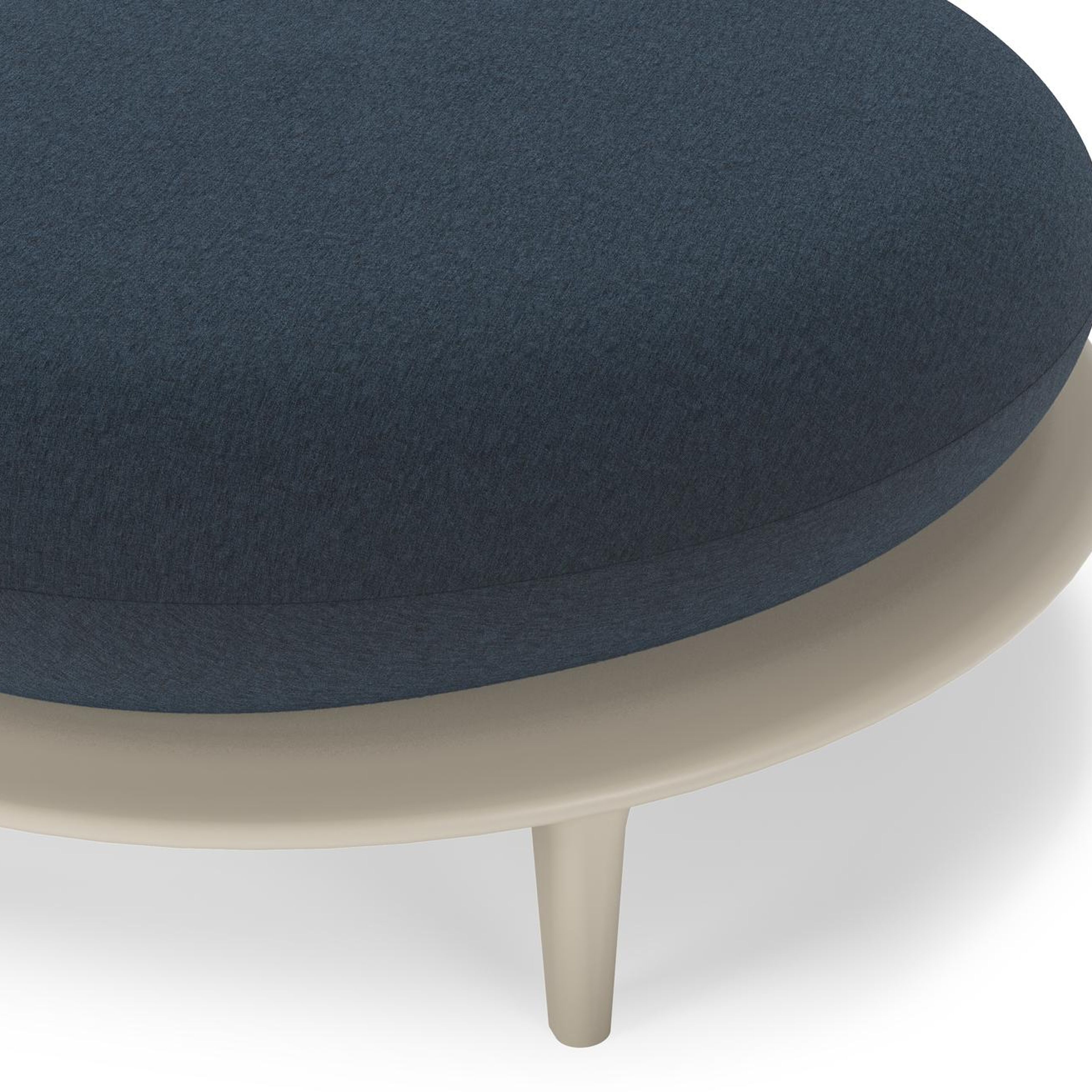 Bomero poef in beige aluminium met heritage indigo all weather sunbrella® luxe kussen | Exterioo tuinmeubelen
