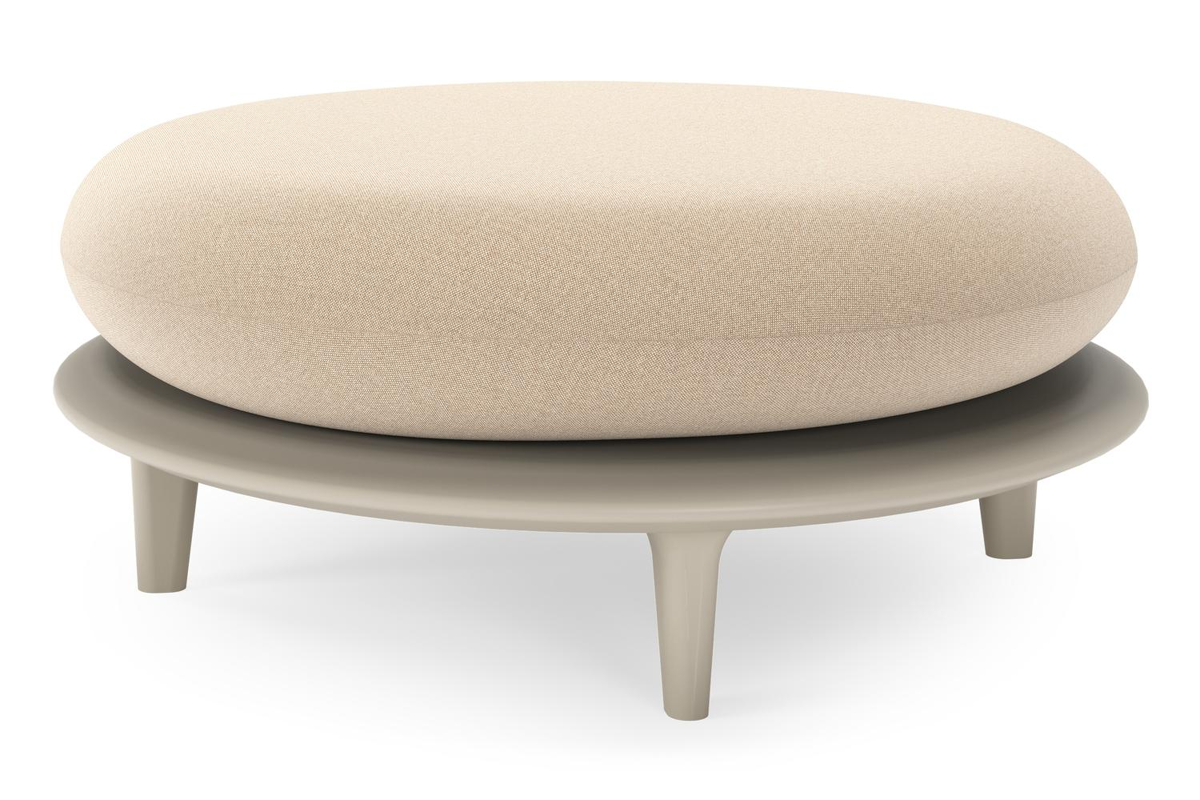 Bomero poef in beige aluminium met natte heather beige all weather sunbrella® luxe kussen | Exterioo