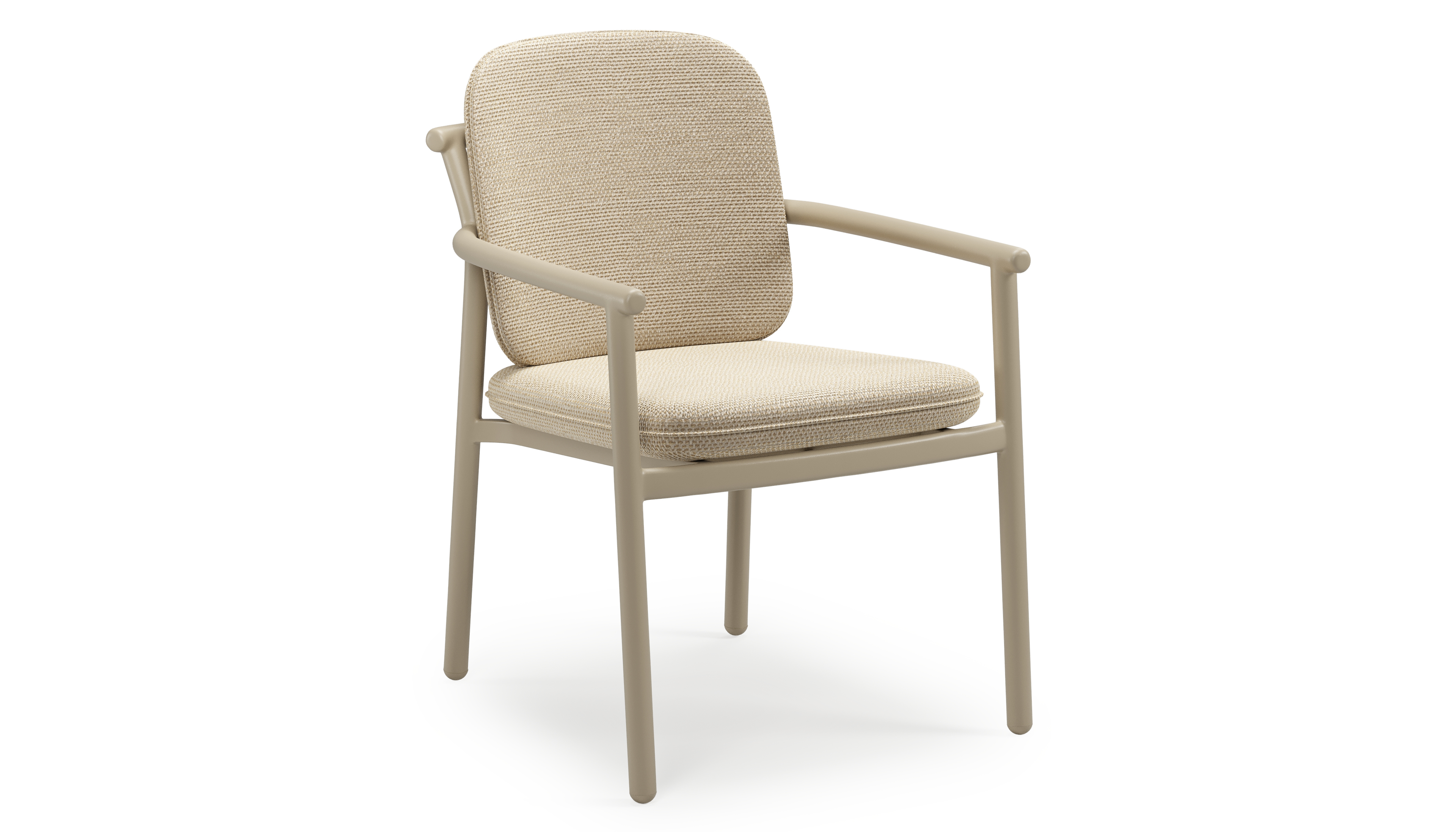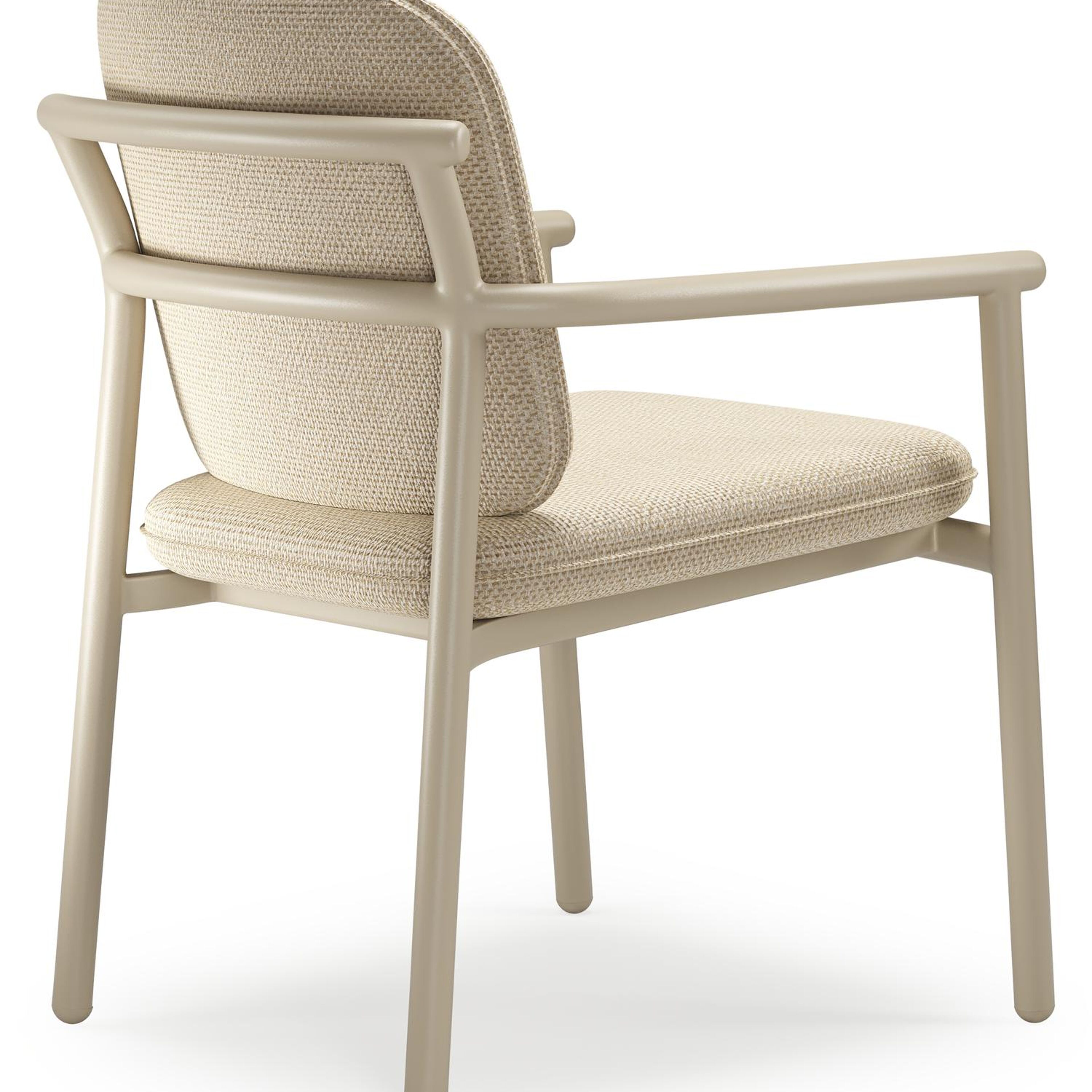 Bono stapelbare tuinstoel in beige aluminium met stoelkussen in All Weather Cosytica Althea Camel | Exterioo tuinmeubelen