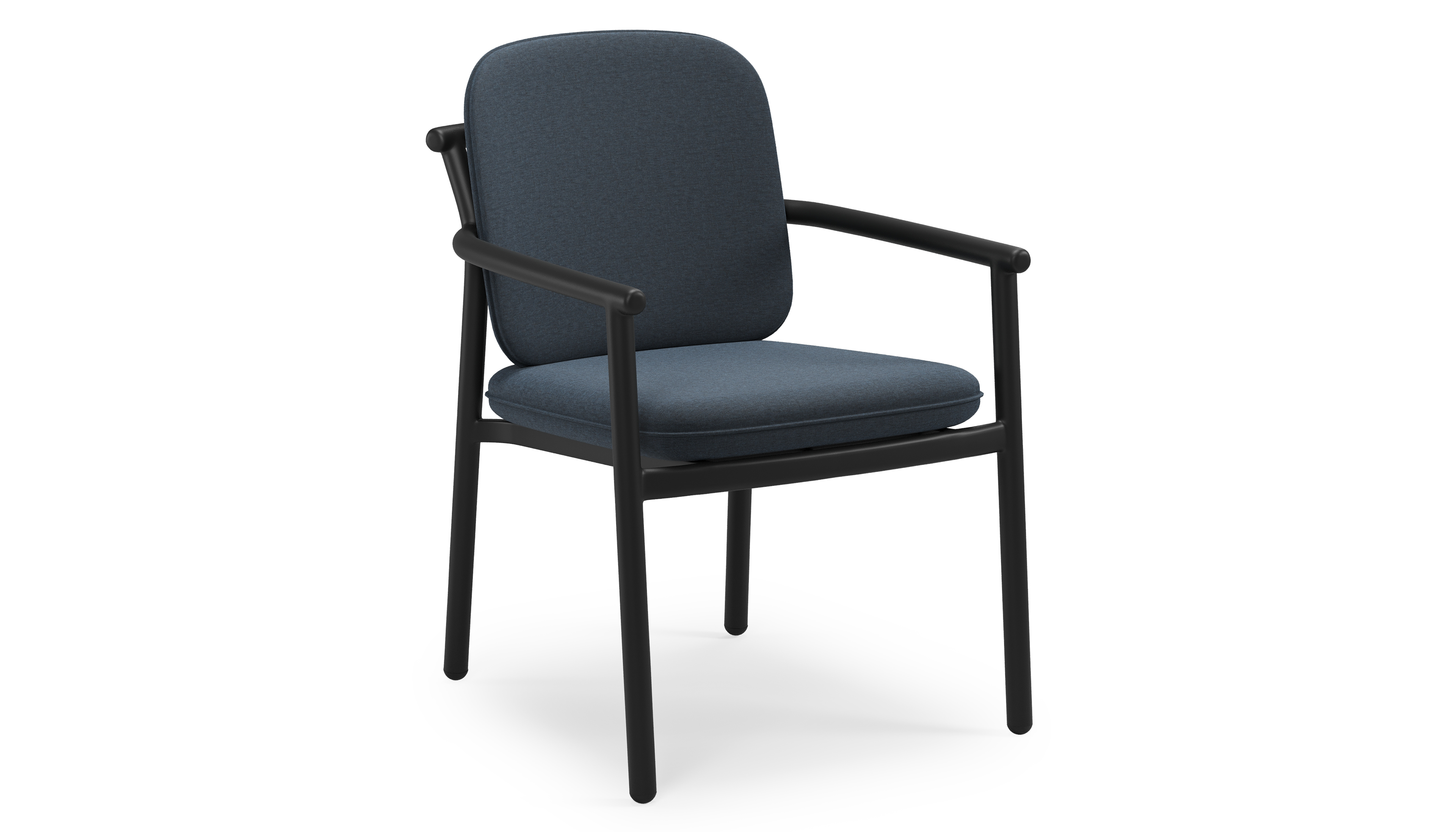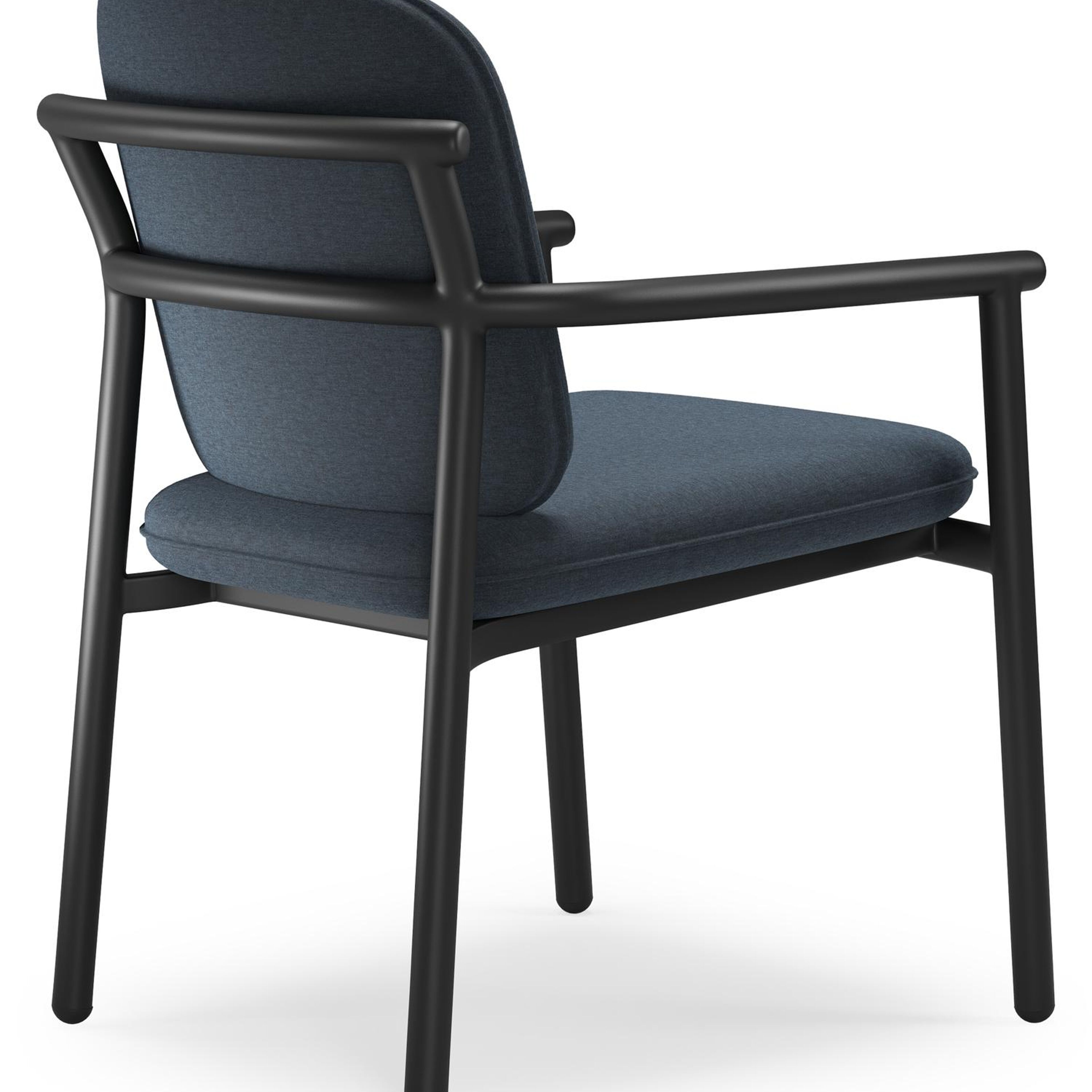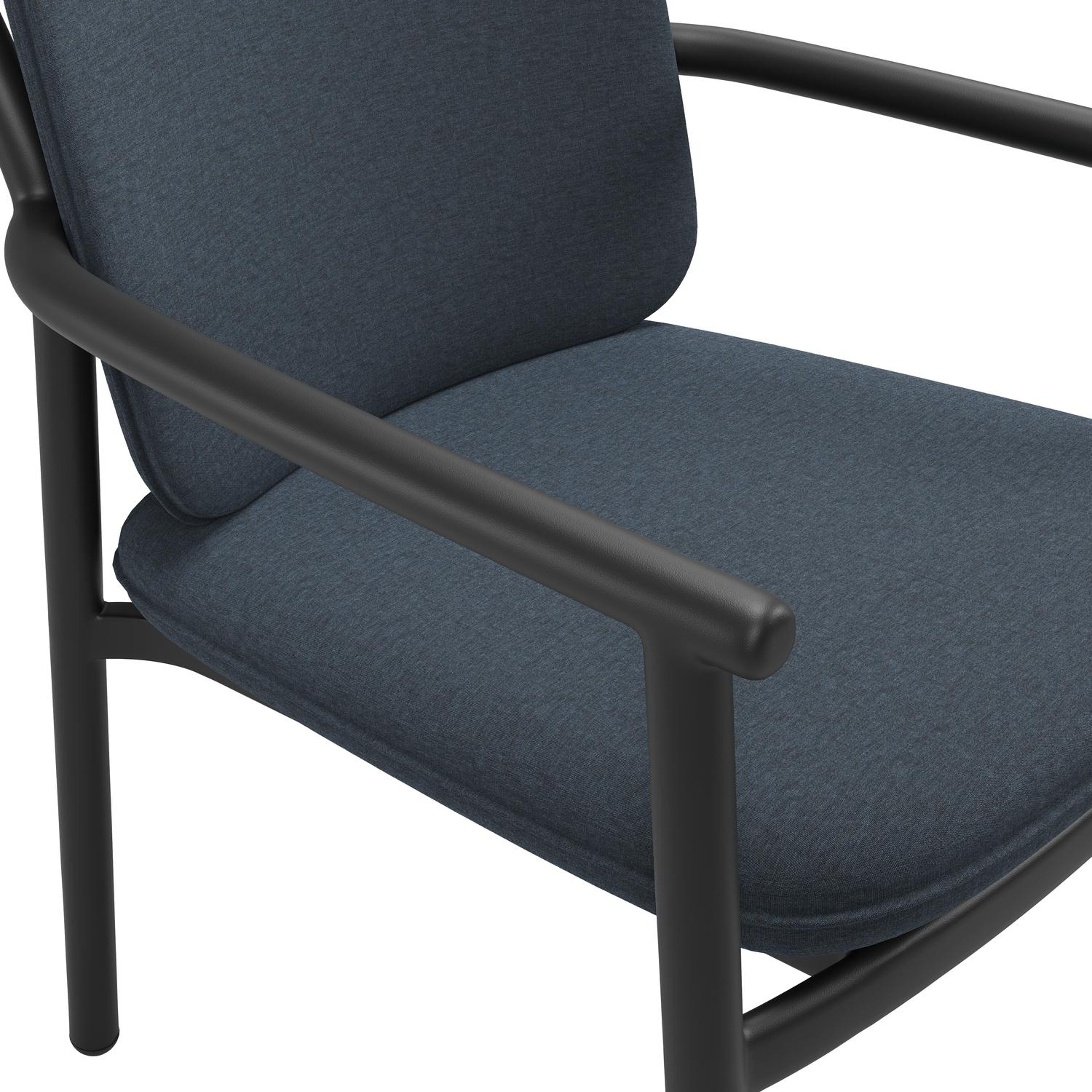 Bono stapelbare tuinstoel in zwart aluminium met stoelkussen in All Weather Sunbrella® Luxe Heritage Indigo | Exterioo tuinmeubelen