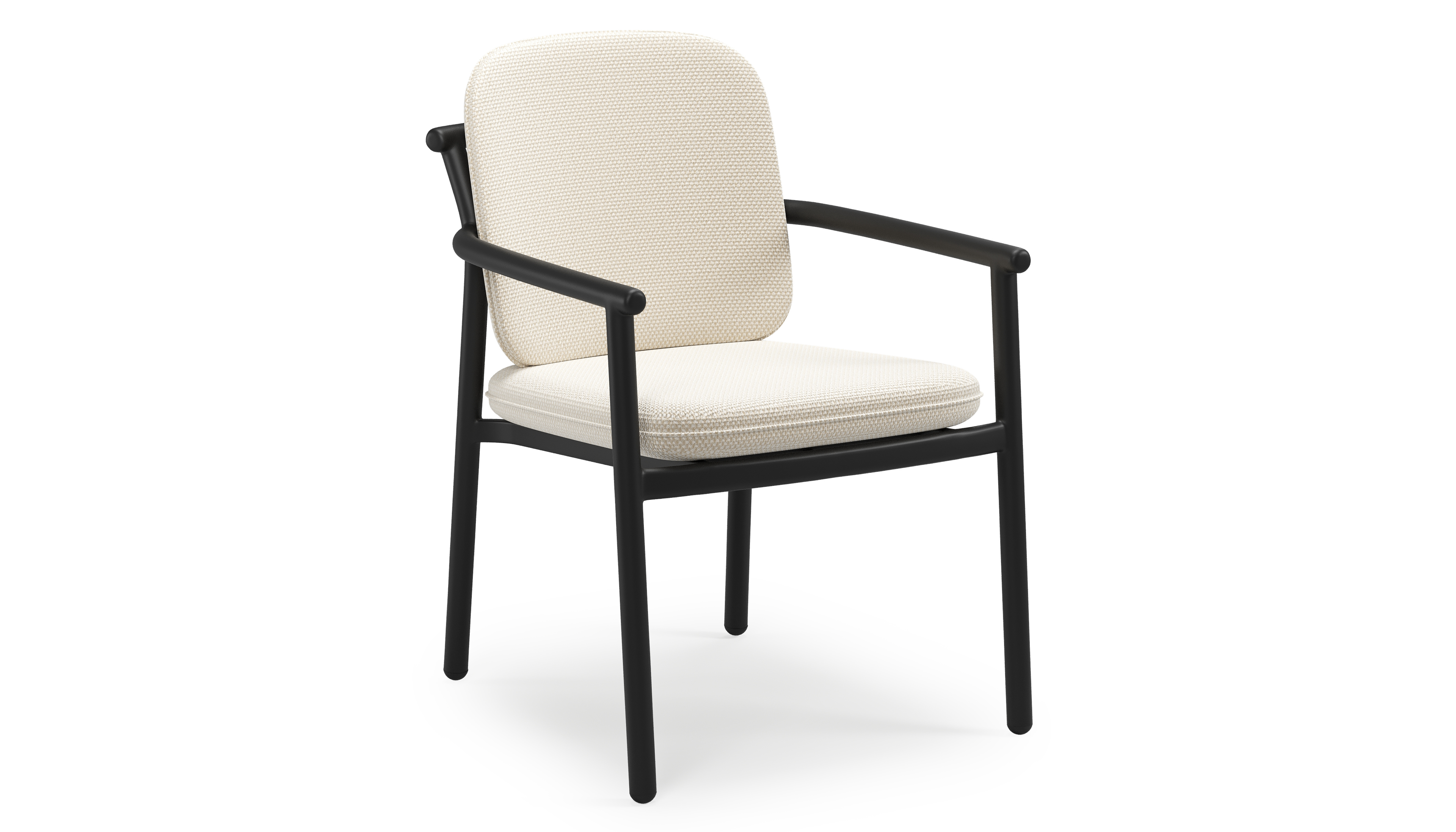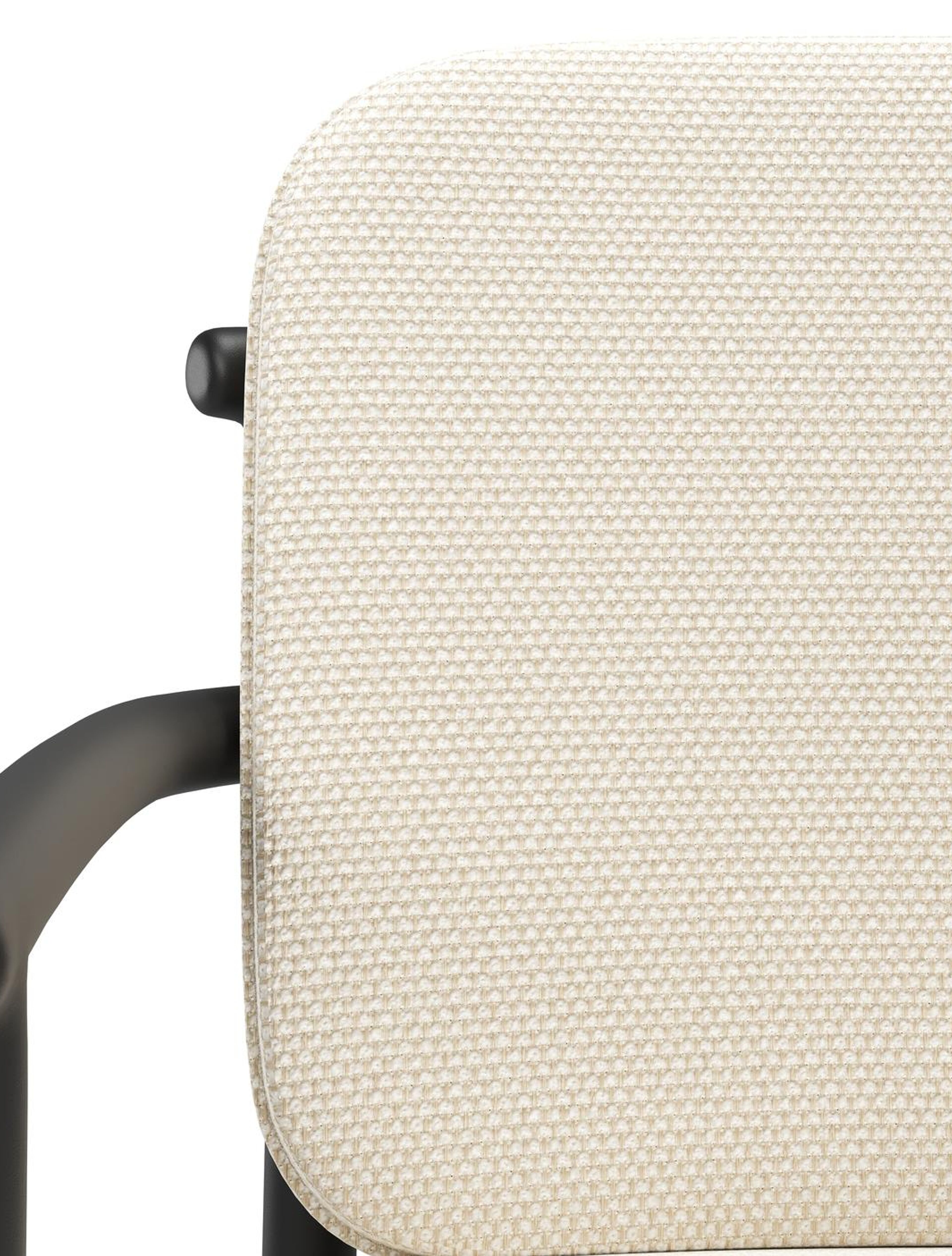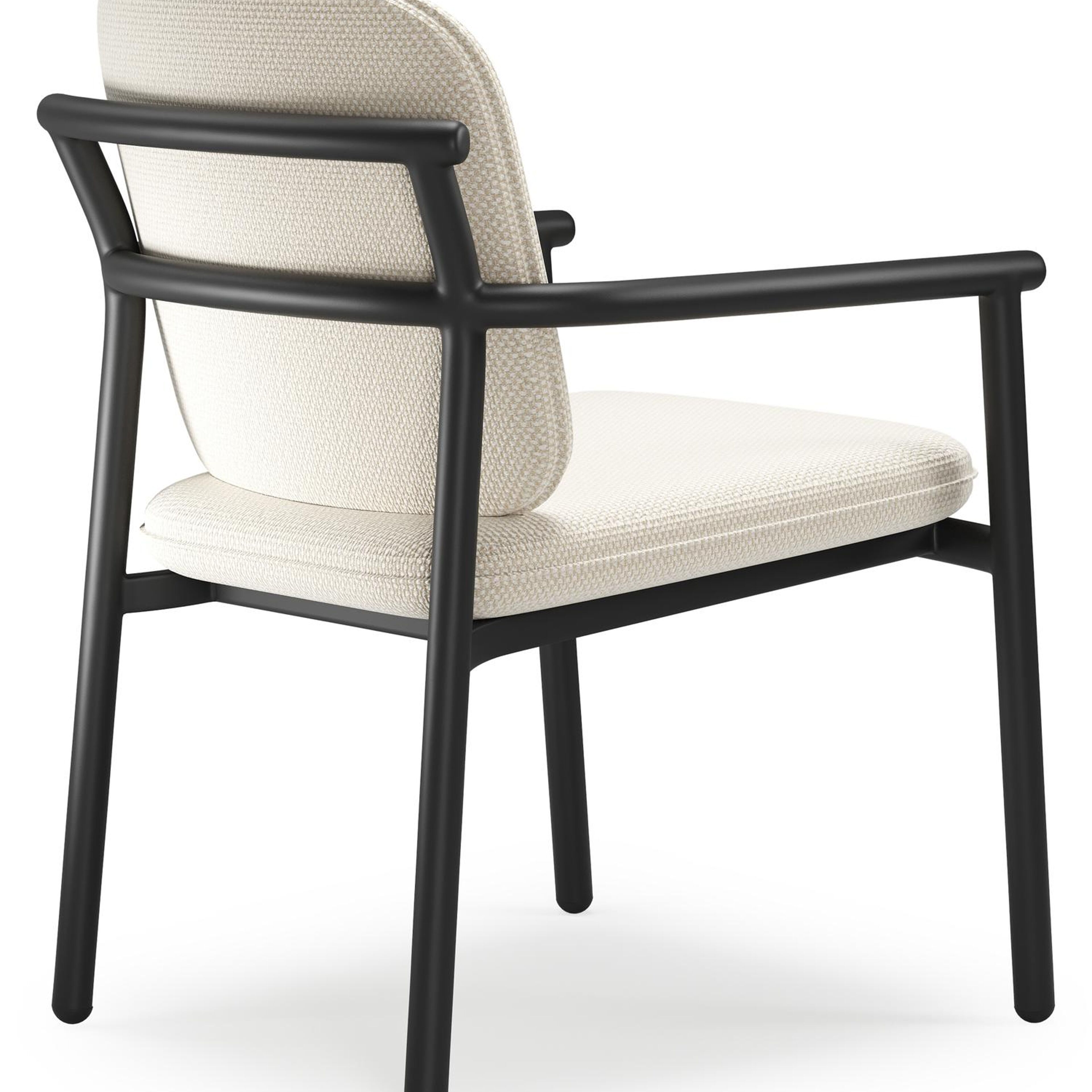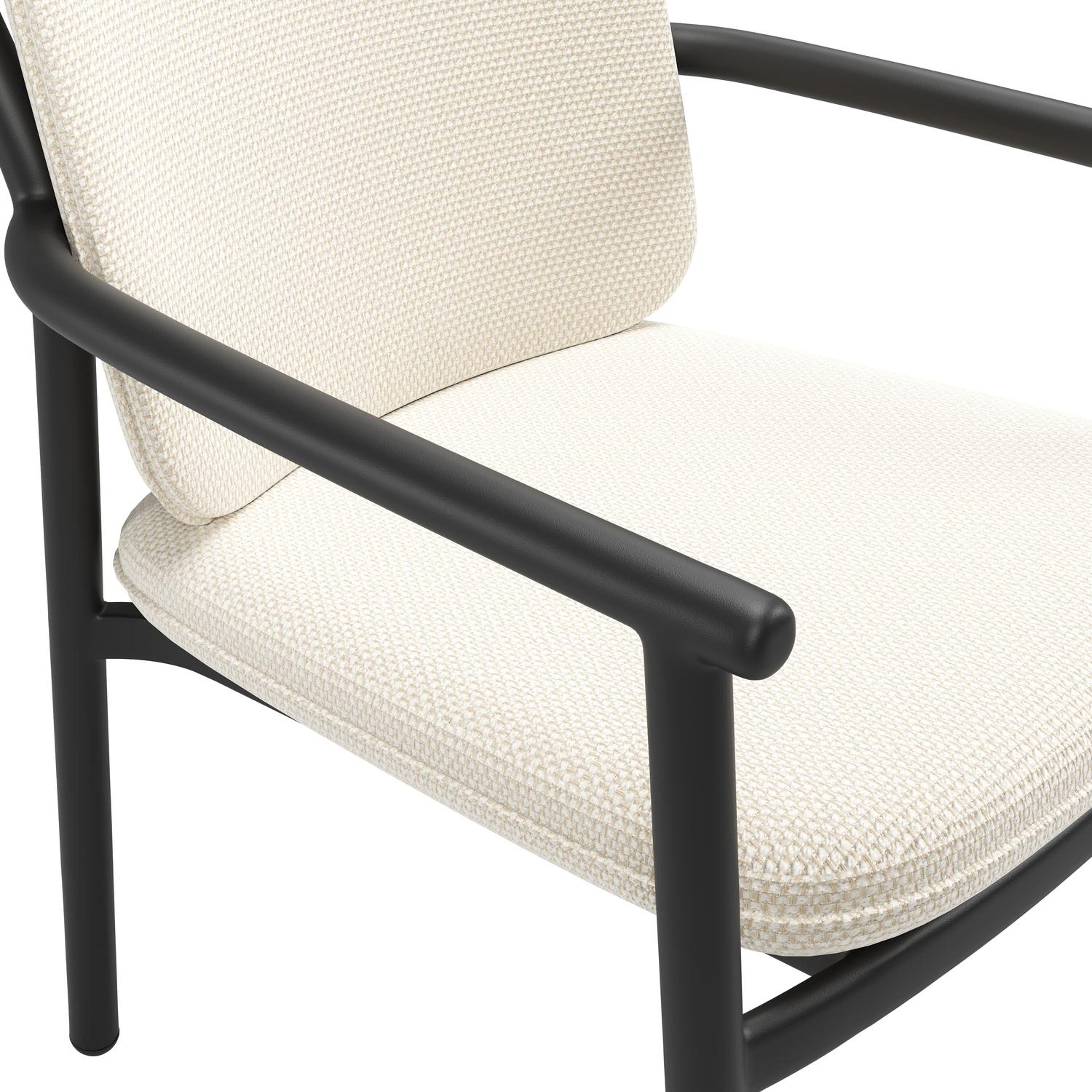Bono stapelbare tuinstoel in zwart aluminium met stoelkussen in All Weather Cosytica Althea Off White | Exterioo tuinmeubelen