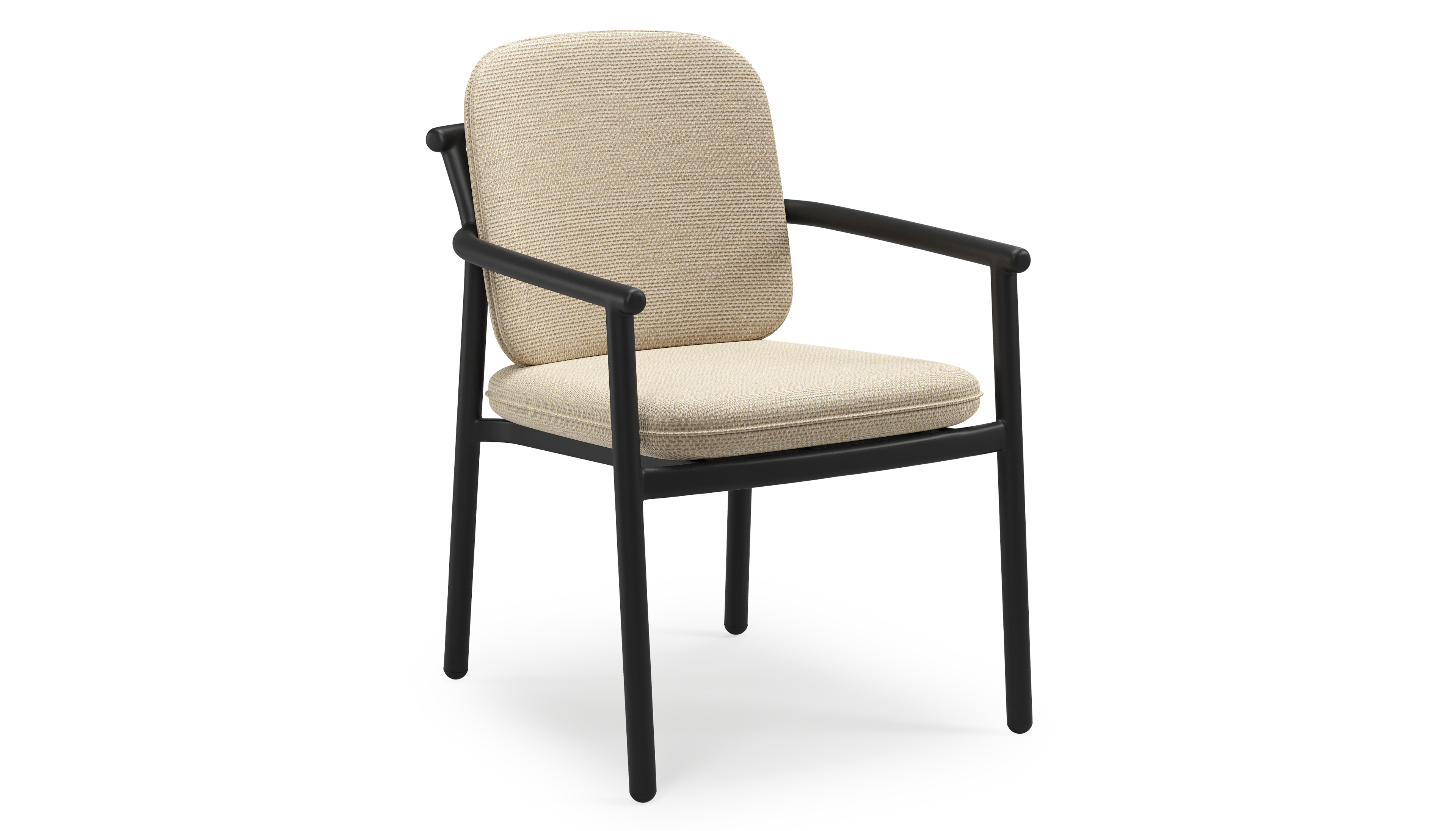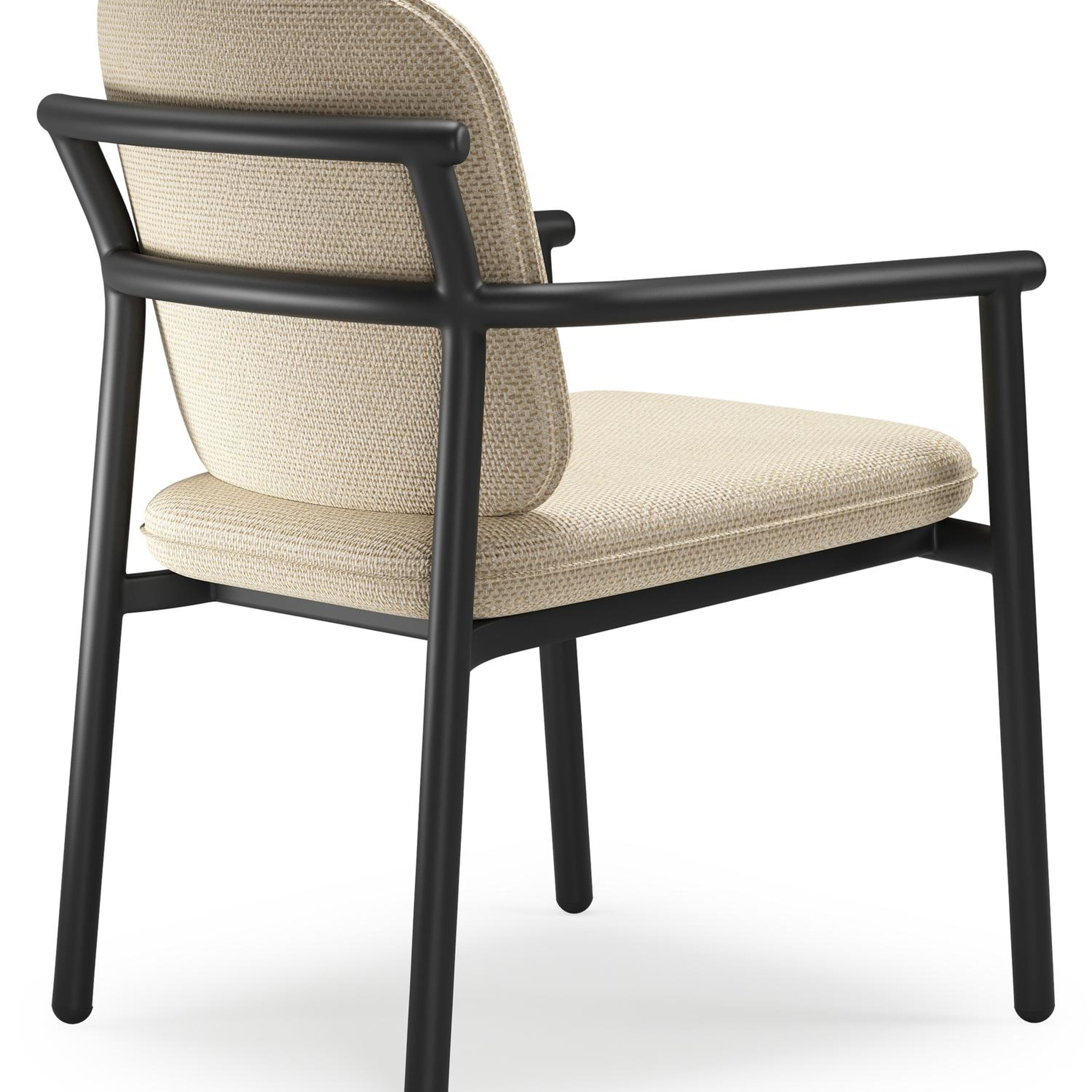 Bono stapelbare tuinstoel in zwart aluminium met stoelkussen in All Weather Cosytica Althea Camel | Exterioo tuinmeubelen