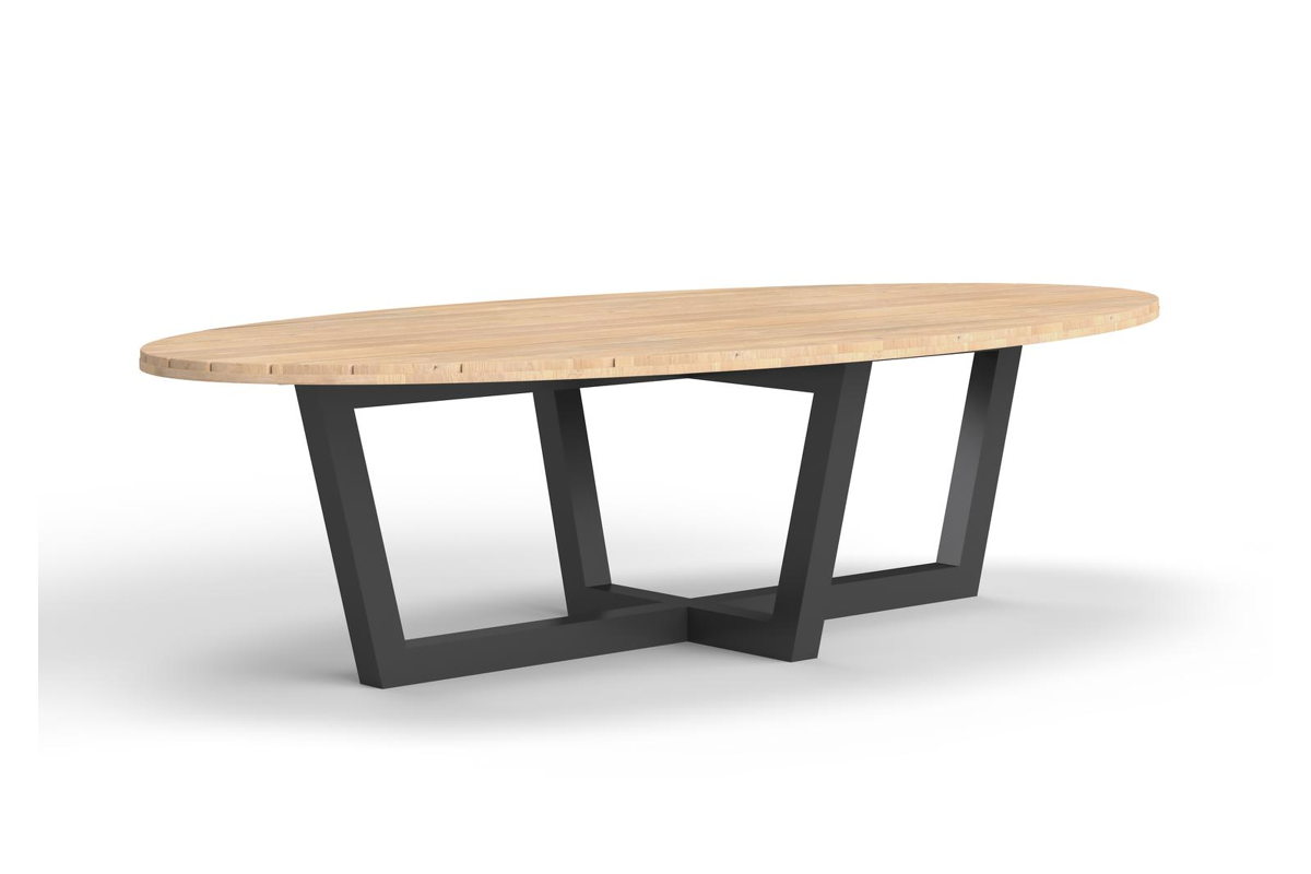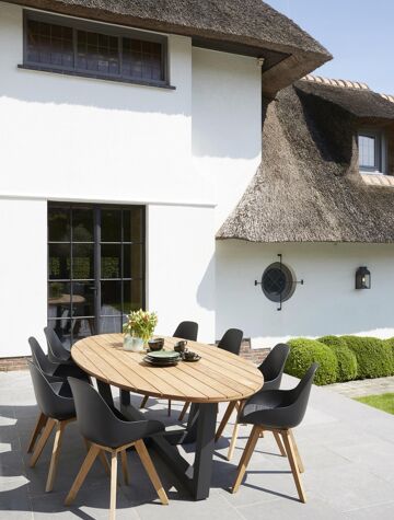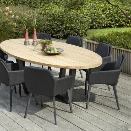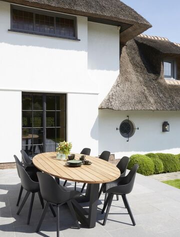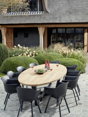 Borato tuintafel in zwart aluminium met tafelblad in teak - L 280 x B 135 cm | Exterioo