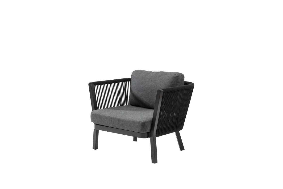 Bugano lounge 1-zit in zwart aluminium met Sunbrella luxe kussens | Exterioo