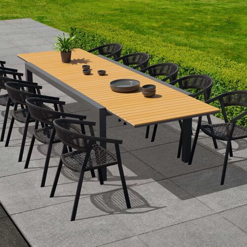 Ervaar onvergetelijke buitenmomenten met de kwalitatieve Calobra tuinset met verlengbare tafel.