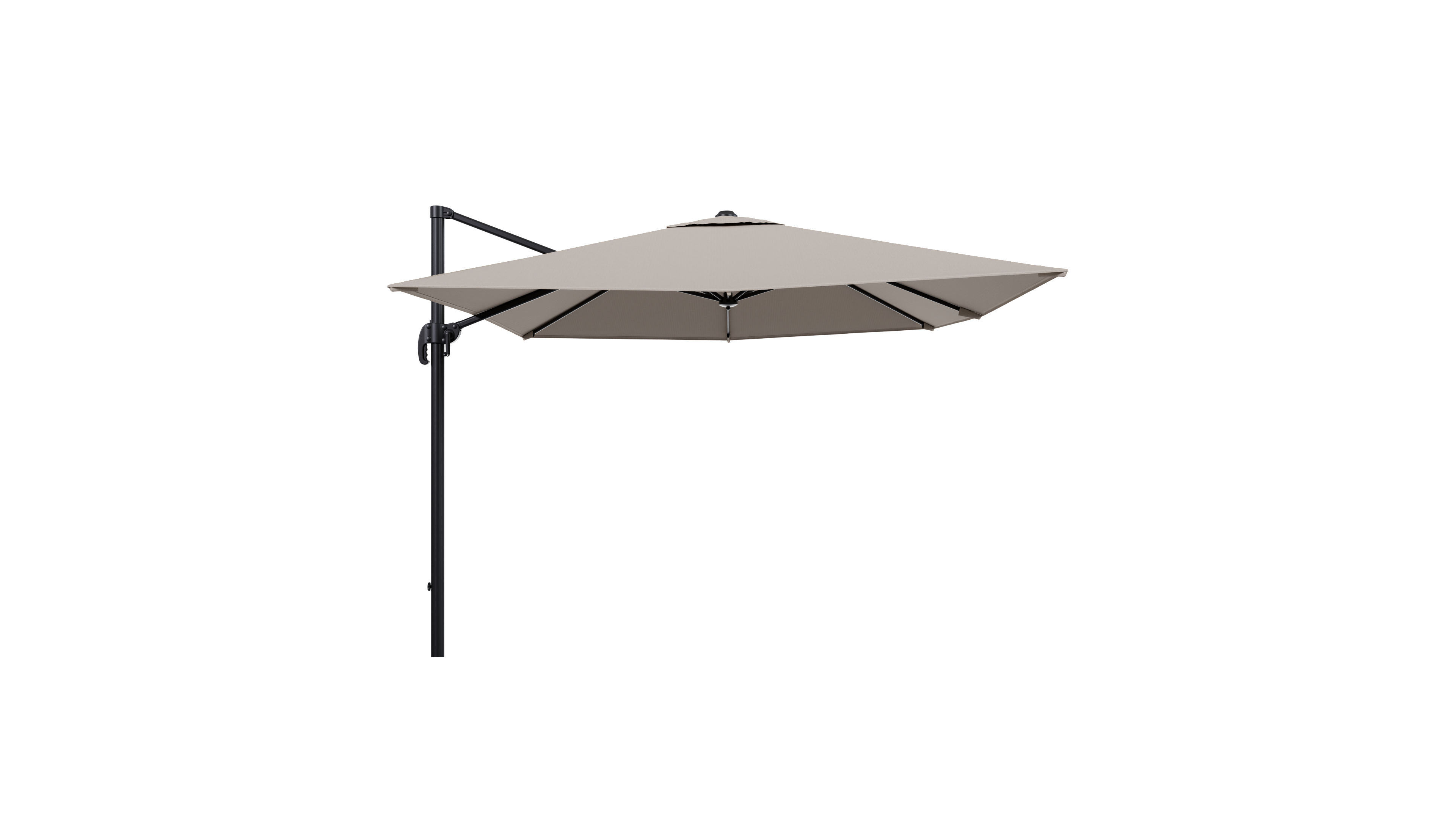 De parasoldoek is gemaakt uit Weather+ Softtouch. De duurzame stof voelt zacht aan en is vuilafstotend. Een Weather+ Softtouch parasoldoek is beperkt waterafstotend. In de winter of bij langdurige regen dek je de parasol best af met de beschermhoes.
