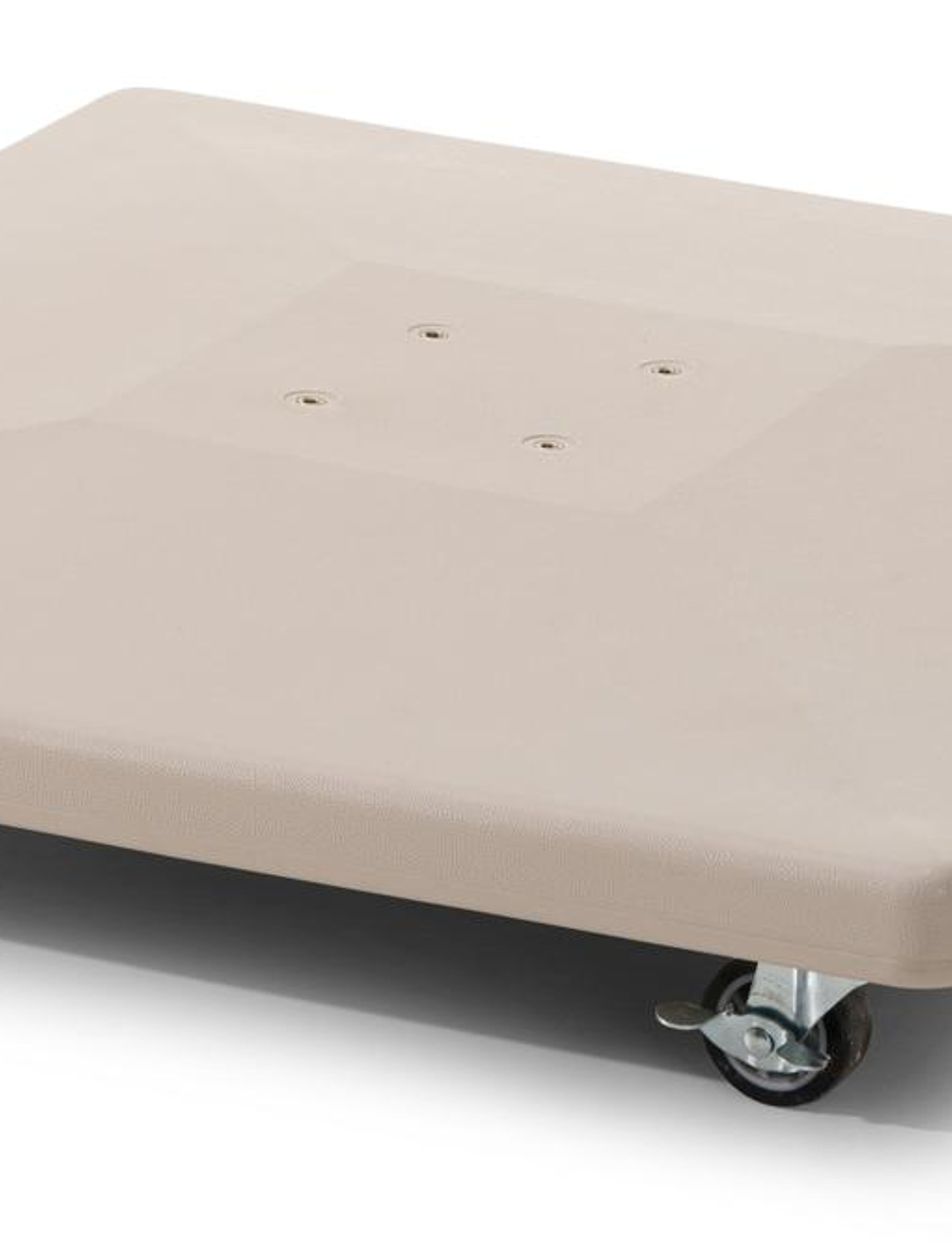 De parasolvoet uit beton met wielen is inclusief zodat je de parasol makkelijk kan verplaatsen.