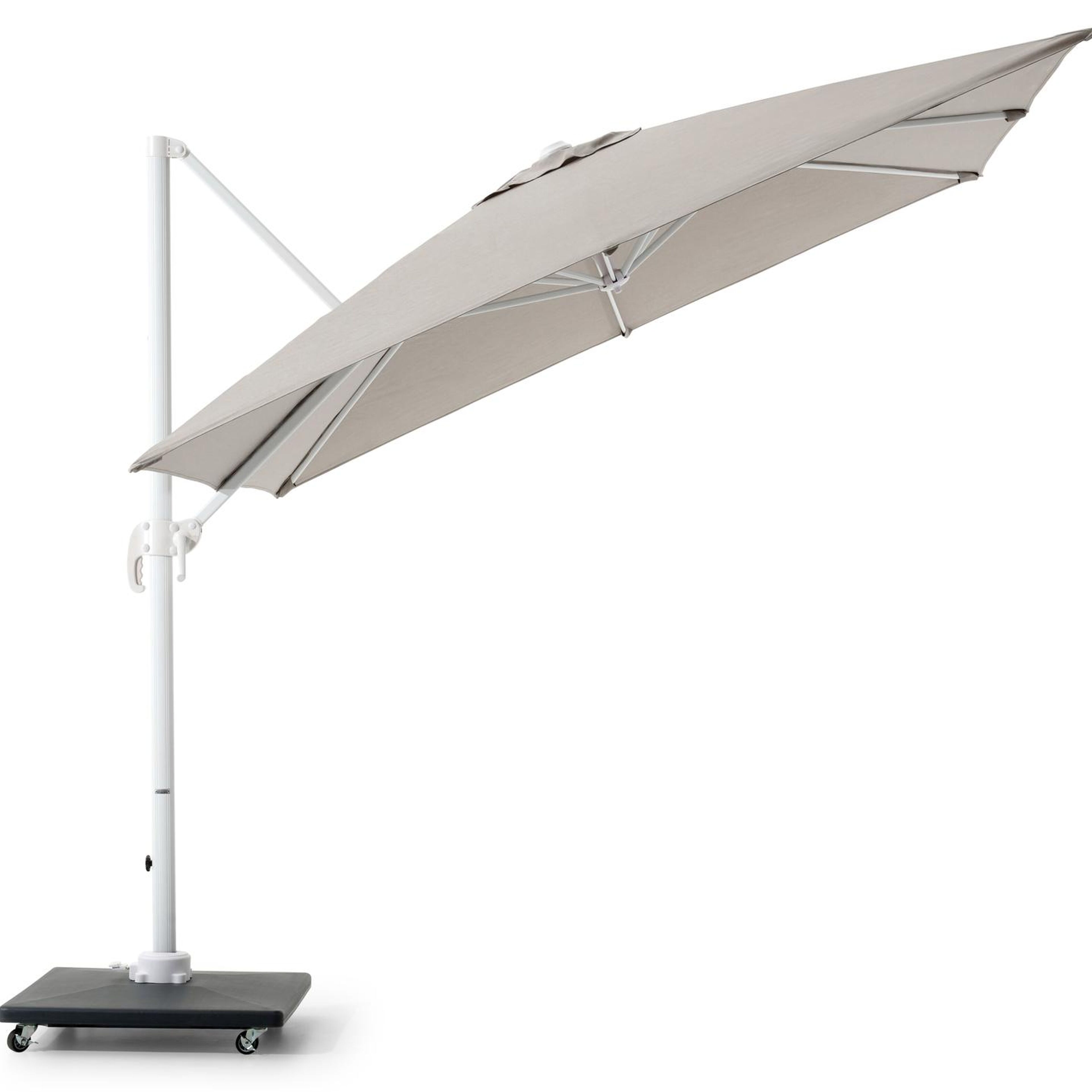 De Calpe zweefparasol is een stevige en gebruiksvriendelijke parasol die jou schaduw en koelte biedt op warme zomerdagen. Het frame van de parasolmast is gemaakt uit roestvrij aluminium, een stevig materiaal. Alle nodige functies zijn aanwezig, zo kan je de parasol makkelijk verstellen in verschillende hoogtes. De parasol draait ook 360 graden rond zijn eigen as en is compact inklapbaar.