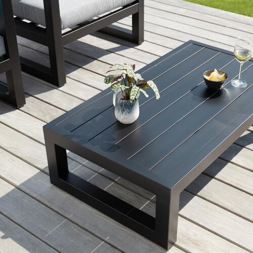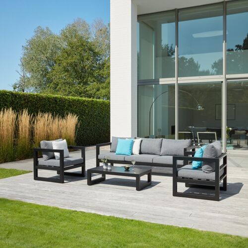 De complete Calzo loungeset is een echte musthave voor op jouw terras. Het frame (zwart) gemaakt uit aluminium, zorgt voor een strak ontwerp. De polyester kussens (grijs) en loungetafel zijn inbegrepen in de set. Het aantal zitplaatsen is voorzien voor 5 personen. Met de Calzo loungeset geniet je optimaal van jouw buitenmoment aan een scherpe prijs. De afmetingen zijn: 1-zitsbank: B 82 x D 76 x H 68 cm 3-zitsbank: B 222 x D 76 x H 68 cm.