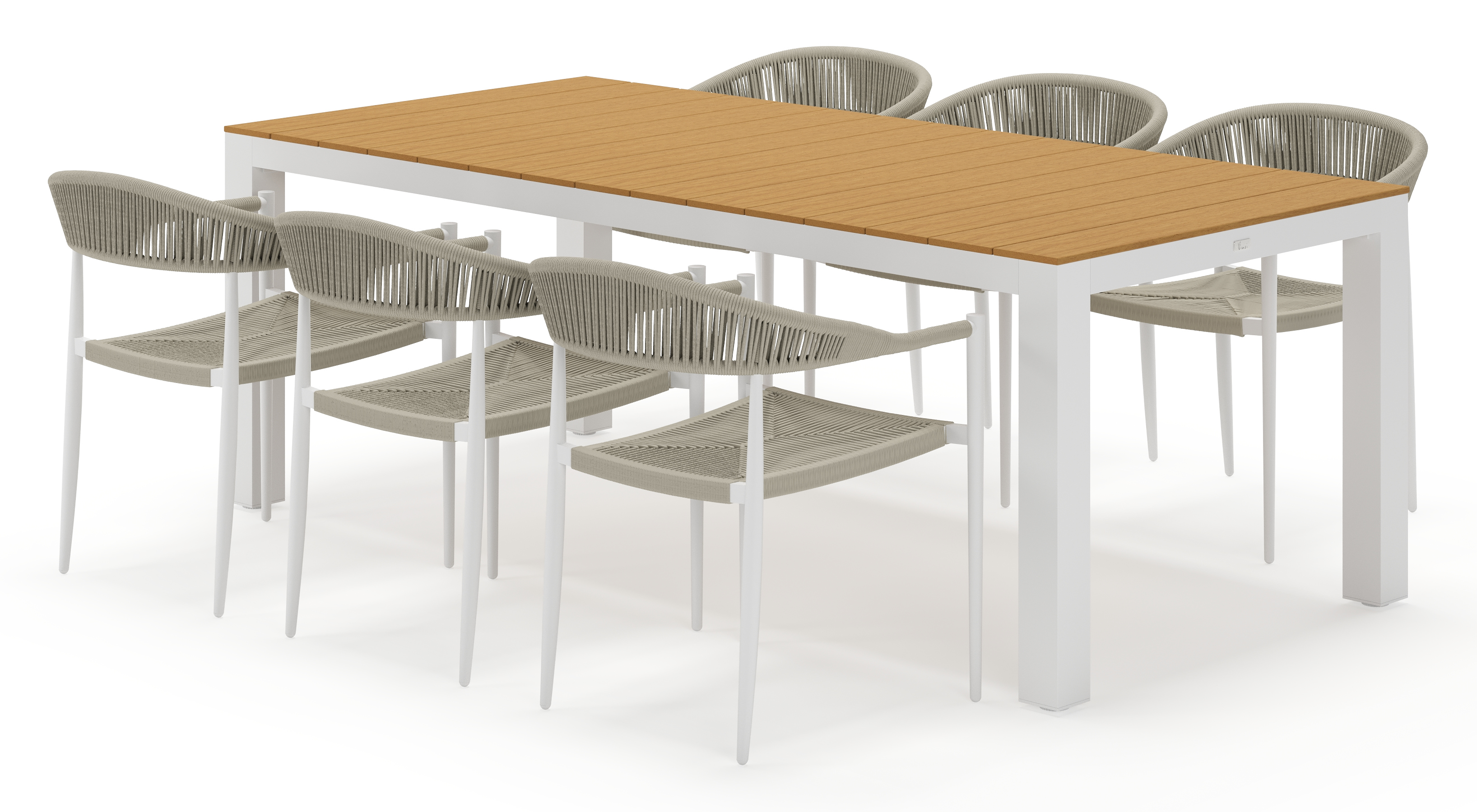 Het frame van de tafel is gemaakt uit roestvrij aluminium, een sterk, maar toch licht materiaal dat makkelijk verplaatsbaar is. Het oppervlak is glad afgewerkt waardoor het geen vuil aantrekt en onderhoudsvriendelijk is. De poedercoating zorgt voor de UV- en weerbestendigheid van je meubel.