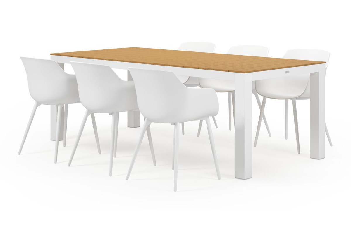 Calzo tuinset in wit aluminium en polywood tafelblad met 6 Paco tuinstoelen | Exterioo