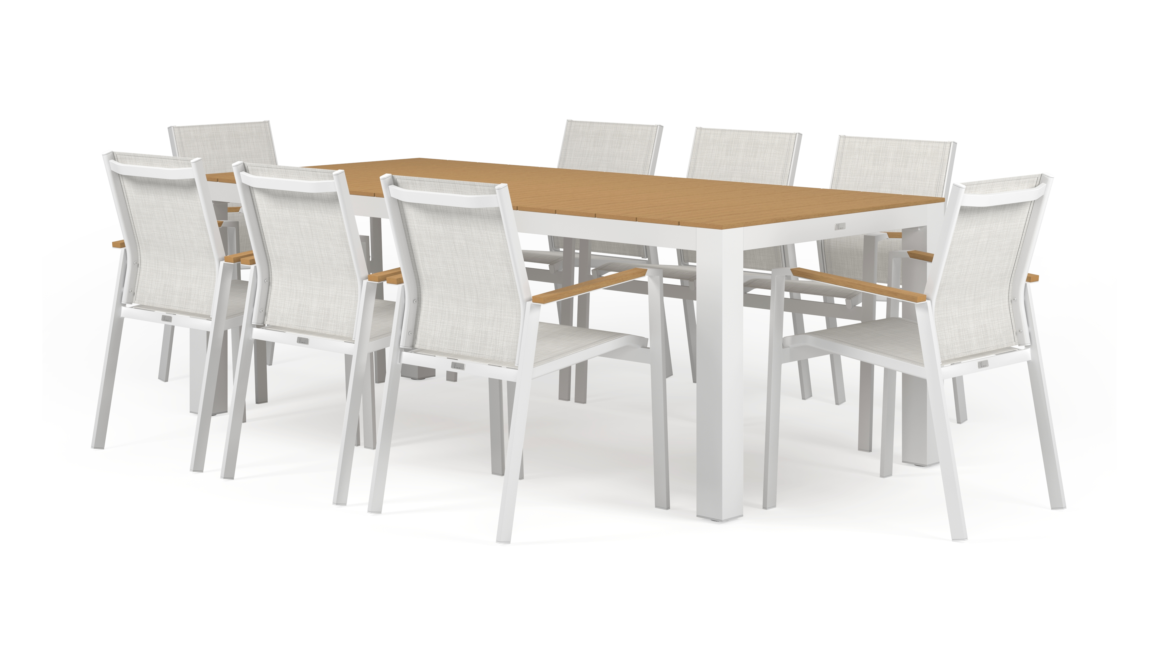 Het frame van de tafel is gemaakt uit roestvrij aluminium, een sterk, maar toch licht materiaal dat makkelijk verplaatsbaar is. Het oppervlak is glad afgewerkt waardoor het geen vuil aantrekt en onderhoudsvriendelijk is. De poedercoating zorgt voor de UV- en weerbestendigheid van je meubel.
