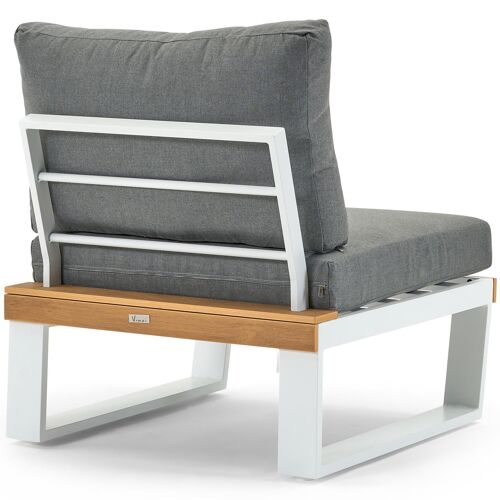 De Campelo loungestoel is de ideale toevoeging tot jouw terras of lounge. Je kan dit tussenstuk gebruiken als extra uitbreiding van jouw loungeset. Je kan dit in de lounge zelf plaatsen om een extra zitplaats te creeeren. Daarnaast kan je het tussenstuk ook los gebruiken als 1-zit.Het zitkussen is inclusief en gemaakt uit polyester, een synthetische en zachte stof. Polyester krimpt of kreukt nauwelijks en is een stevige stof. Je kan het kussen makkelijk wassen aangezien het kussen afritsbaar is. We raden je aan het kussen binnen te nemen bij regen of tijdens de wintermaanden.
