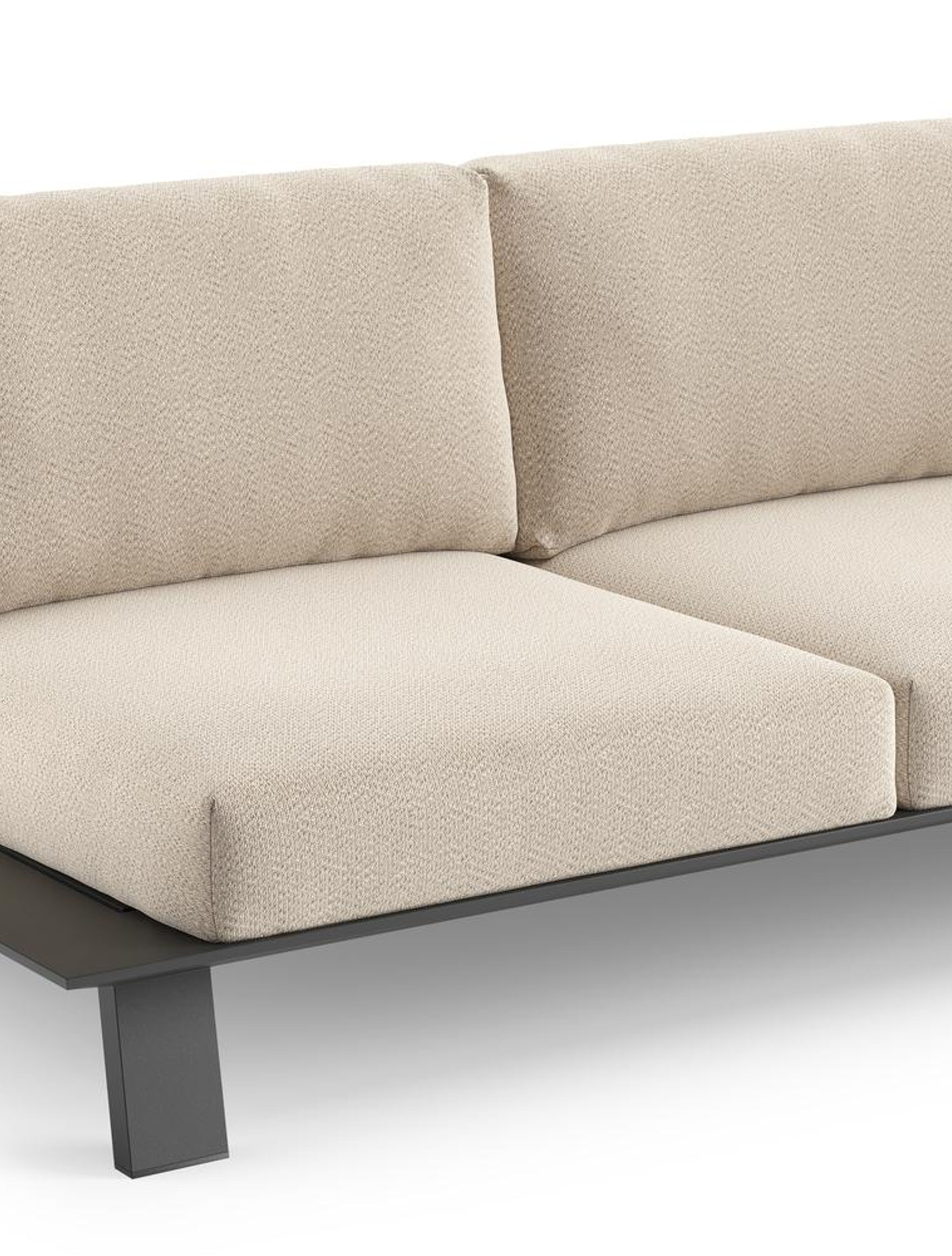 De Cesano lounge heeft een minimalitisch design, maar is zeer stijlvol dankzij het verfijnde frame. De collectie heeft onder het frame typerende schuine pootjes als klein detail. Het frame, vervaardigd uit hoogwaardig aluminium, garandeert niet alleen een stijlvolle uitstraling maar is tevens bestand tegen roestvorming.