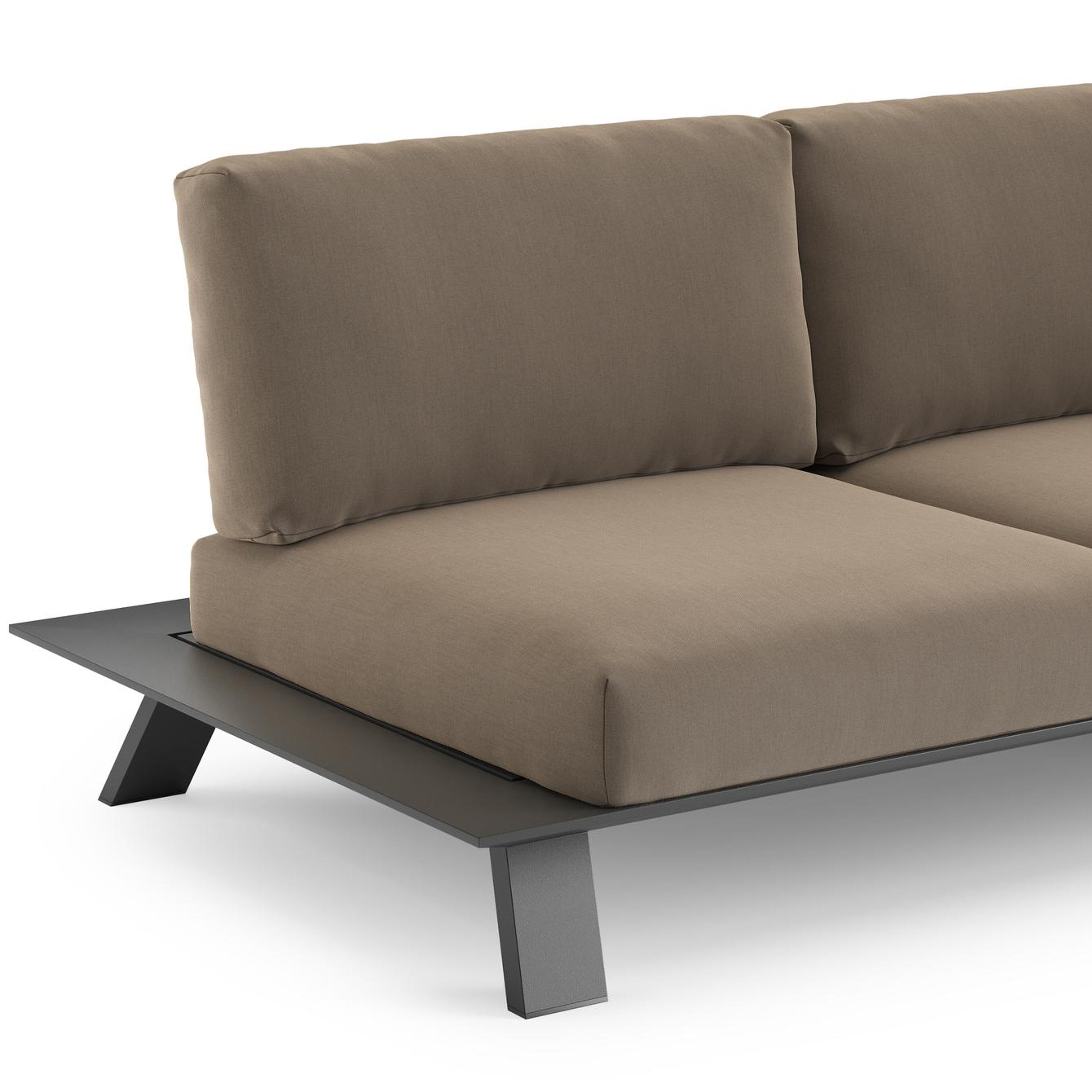 Cesano loungehoek in zwart aluminium met natte heather grey all weather Sunbrella® luxe kussen | Exterioo tuinmeubelen