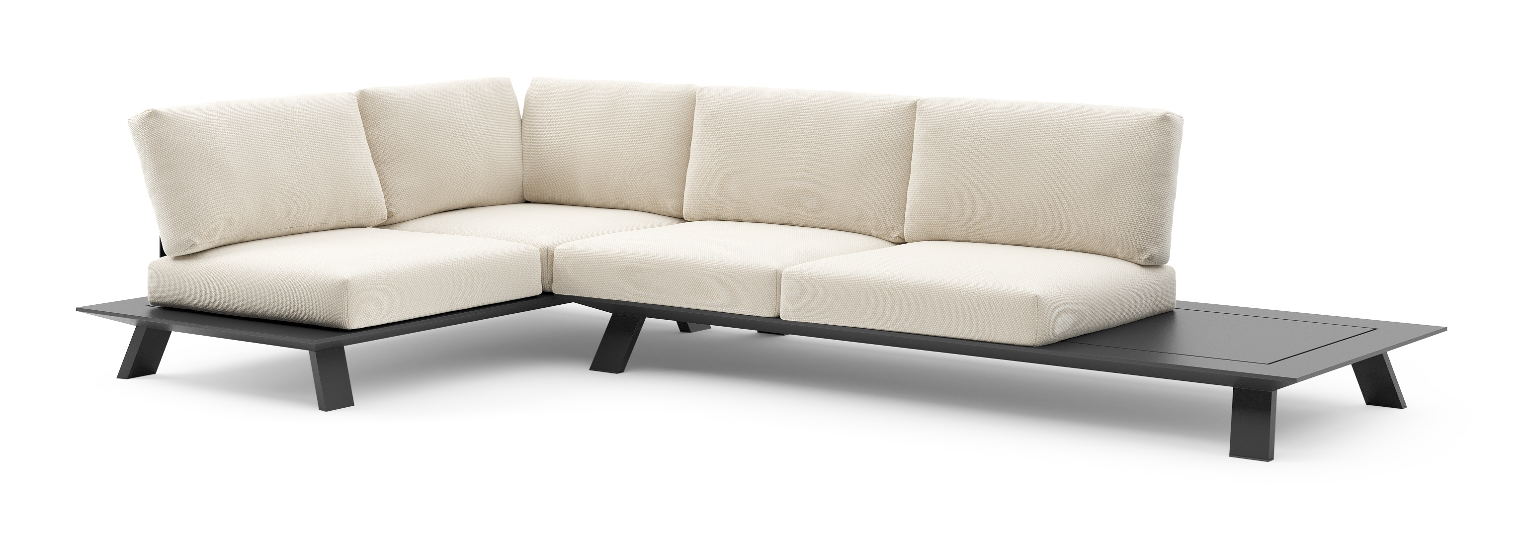 Cesano loungehoek in zwart aluminium met althea off white all weather Cosytica kussen | Exterioo tuinmeubelen