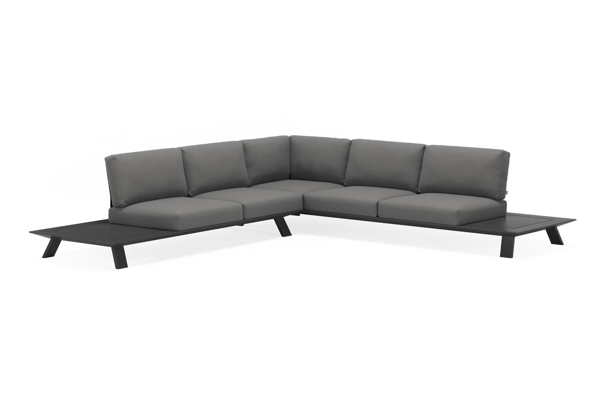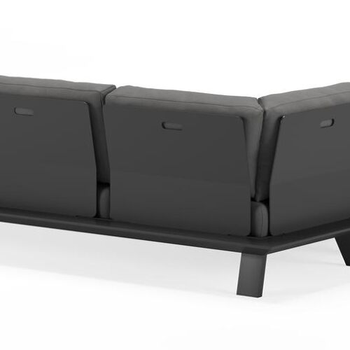 Cesano loungehoek in zwart aluminium met natte charcoal chine all weather sunbrella® luxe kussens | Exterioo