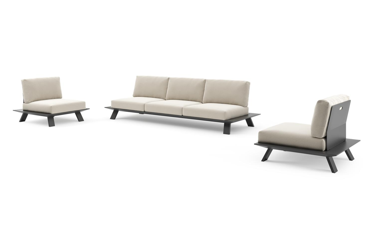 De Cesano lounge heeft een minimalitisch design, maar is zeer stijlvol dankzij het verfijnde frame. De collectie heeft onder het frame typerende schuine pootjes als klein detail. Het frame, vervaardigd uit hoogwaardig aluminium, garandeert niet alleen een stijlvolle uitstraling maar is tevens bestand tegen roestvorming.
