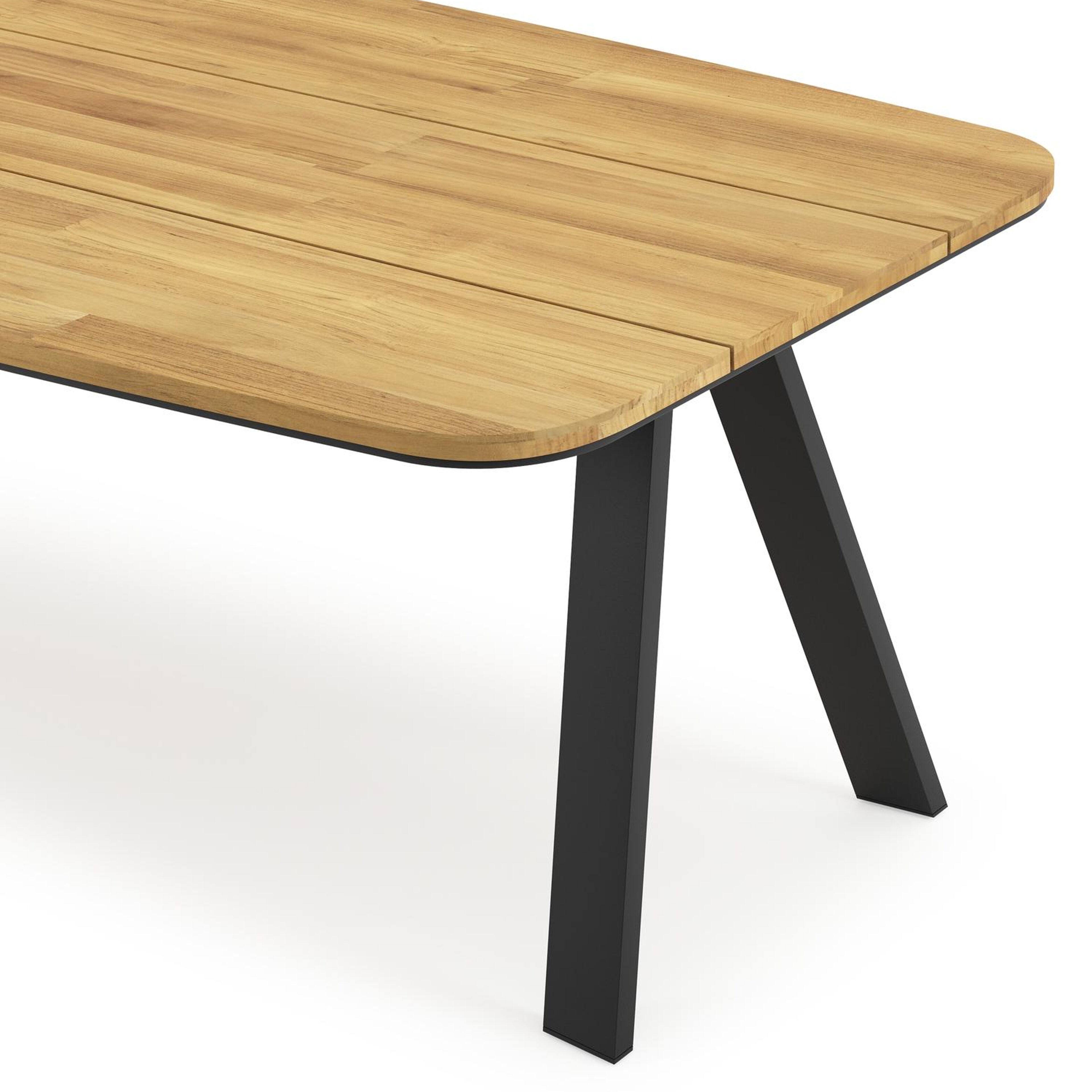 Een tafelblad uit teak staat gelijk aan bijzondere kwaliteit en natuurlijk design. Teak is een kwalitatieve houtsoort gekenmerkt door zijn hardheid. Aangezien hout leeft, kan de structuur of kleur licht anders zijn dan op het beeld weergegeven.
