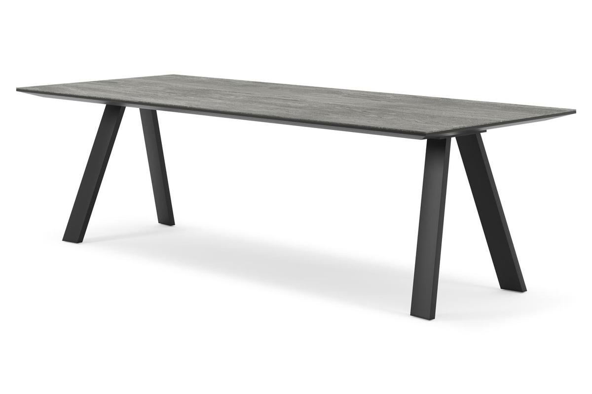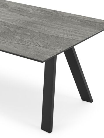 De Cesano tafel onderscheidt zich door zijn stijlvolle onderstel met omgekeerde V-poten, wat een eigentijdse en elegante uitstraling geeft. Met zijn tijdloze charme voegt de Cesano tafel een vleugje moderne klasse toe aan elk interieur.
